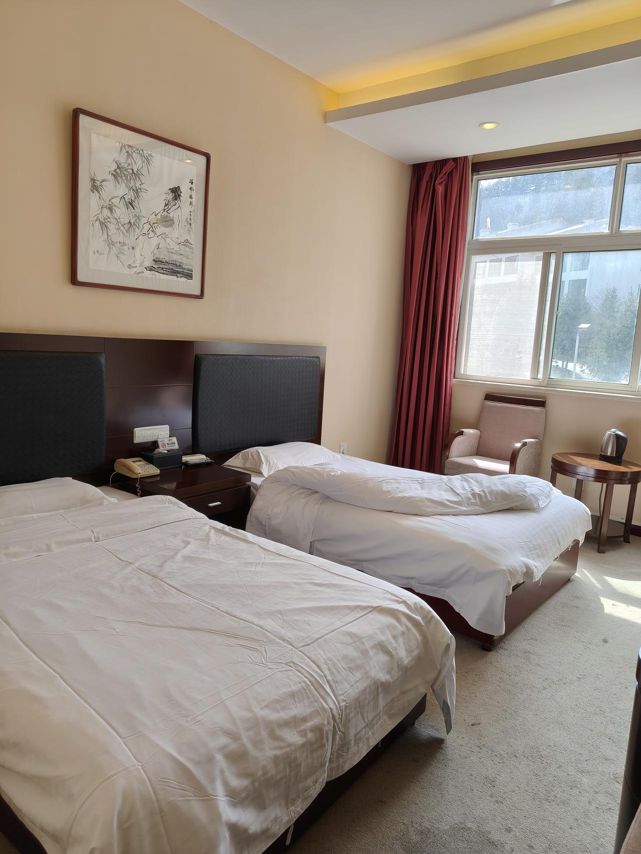 景区附近有民宿,不过不多,我们直接导航到景区的杜鹃山庄,这是政府投资修建的接待大型会议的地方,有多座建筑群,我们住的是一座建在小河边的带院子小楼,房间虽然有点陈旧但是卫生条件挺好,每晚才140,还含早餐,园区里流水潺潺,景色绝美,吃饭是在一个山庄,走路只需几分钟,这里一看就是过去接待大型会议的地方。