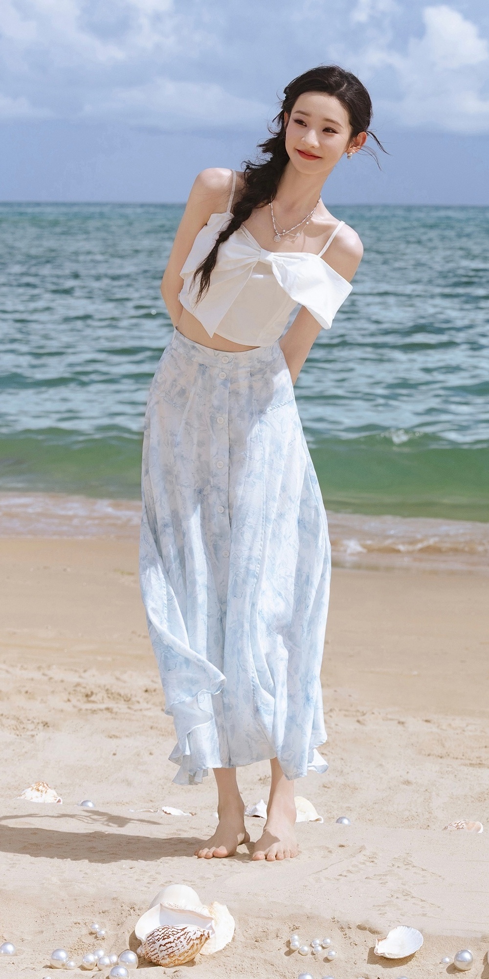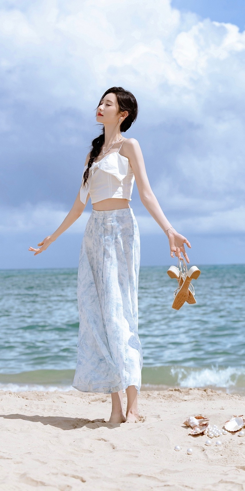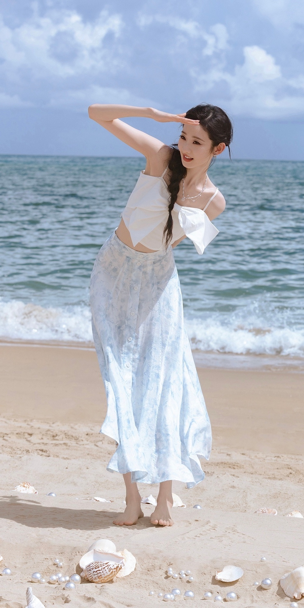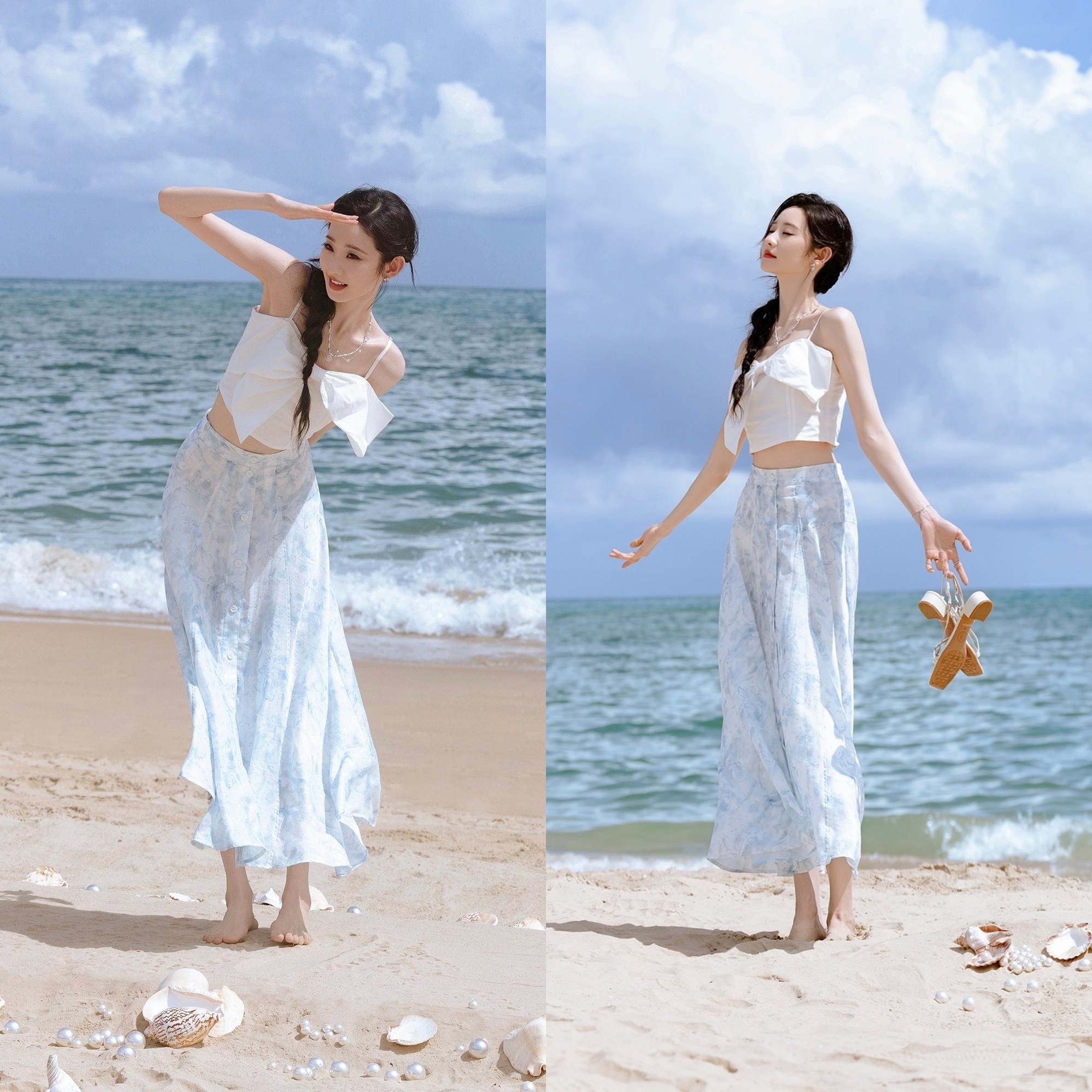 张艺凡高清壁纸:夏日裙装海边写真大片,仙气飘飘。张艺凡