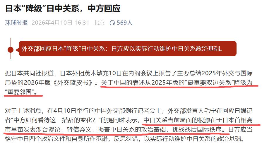 可今年这份新的《外交蓝皮书》,却直接变了味,把对中国的描述,从“最重要双边关系”降级成了“重要邻国”,看似只是几个字的变化,背后却是日方对华战略的重大调整。