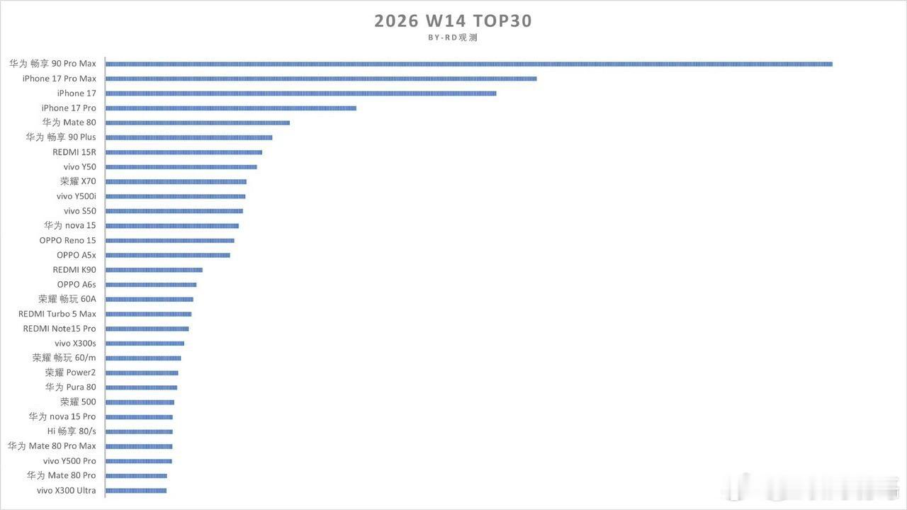 华为畅享90系列首销数据非常恐怖,非常可观,首周激活量确切的数据是在45万台±,如果论渠道出货量,已达到50万台加+。这个数据是什么概念呢,直接拿下W14单周单品销量第一,市场份额更是份额来到了25.9%,强势登顶第一 ,遥遥领先于国产友商,从横向对比图来看,就是遥遥领先,谁要是再刷什么15R,畅享90就是它最严厉的父亲。