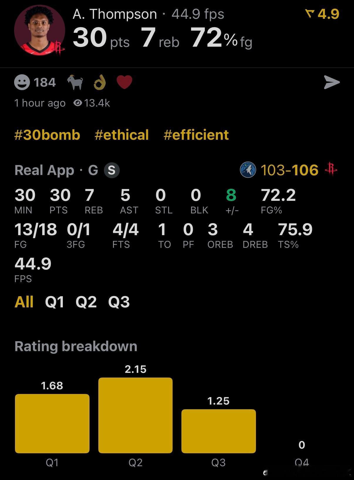 双星闪耀⭐阿门三节30分7篮板5助攻阿杜三分29分6篮板5助攻森林狼vs火箭休斯