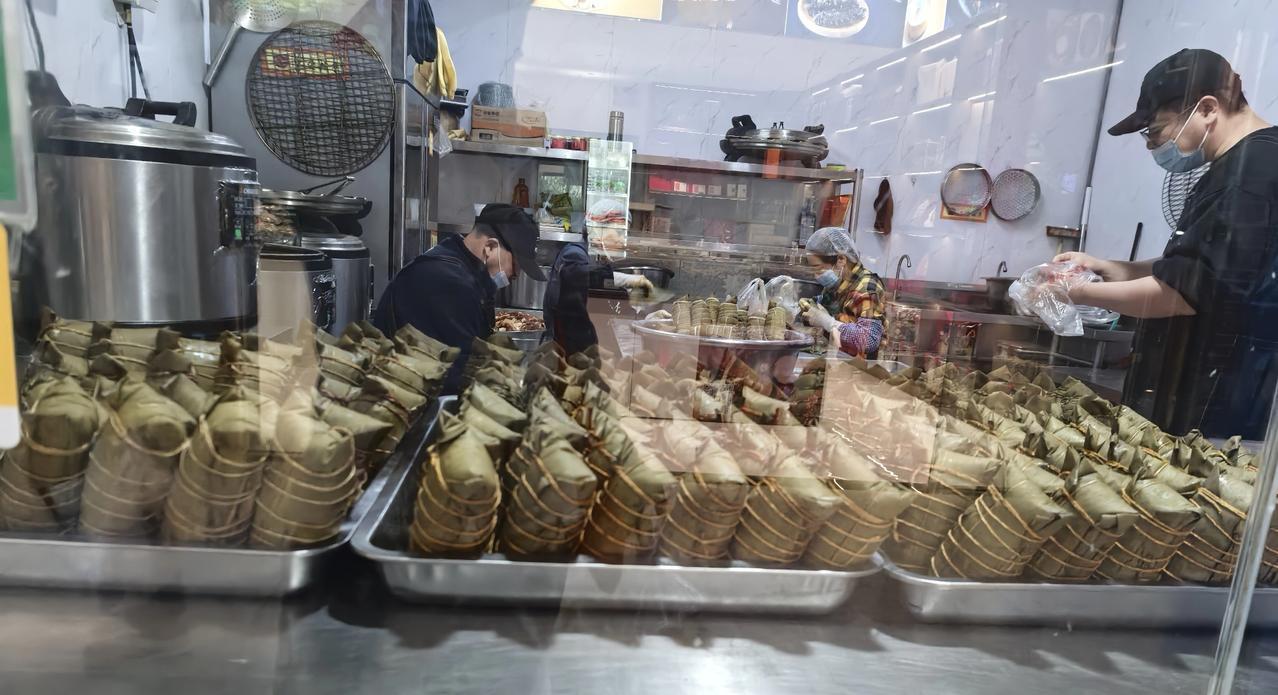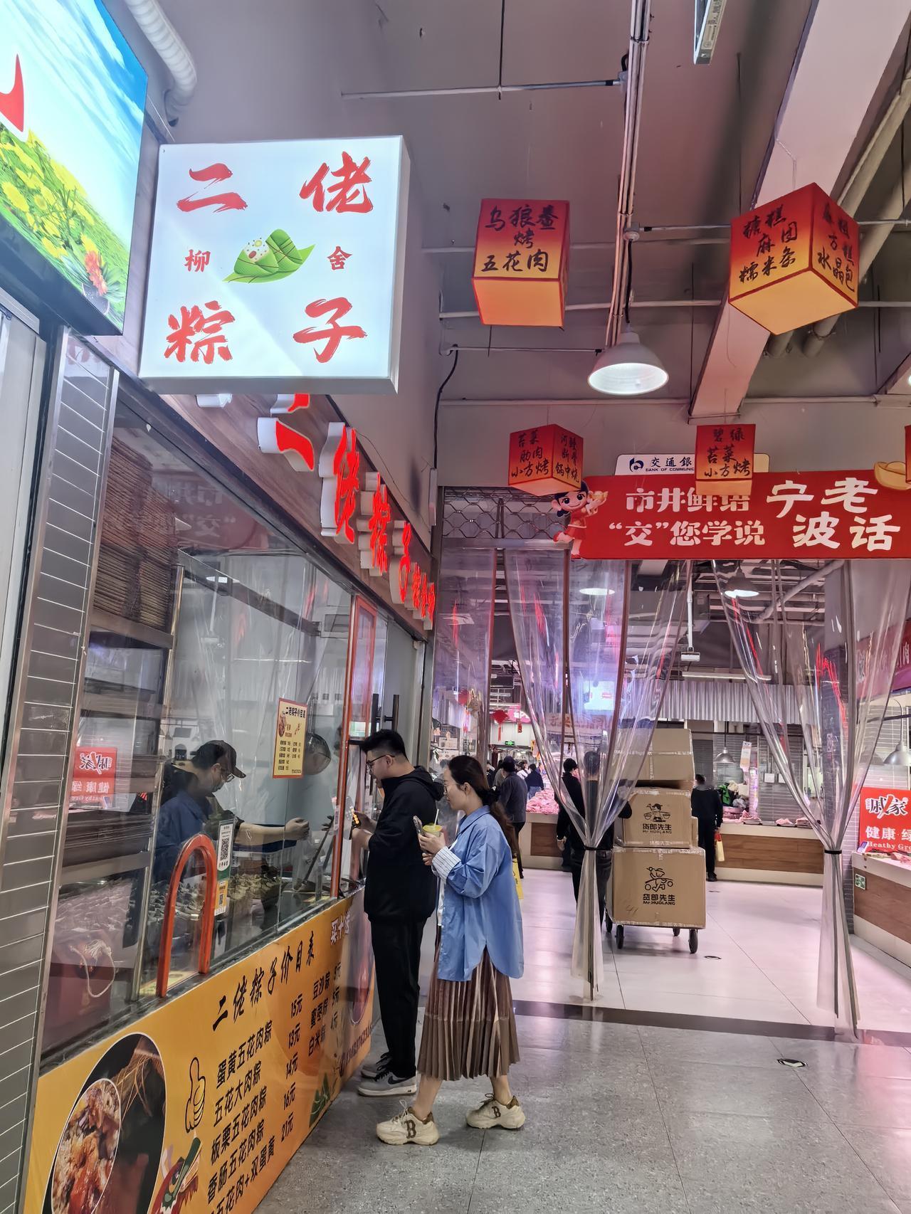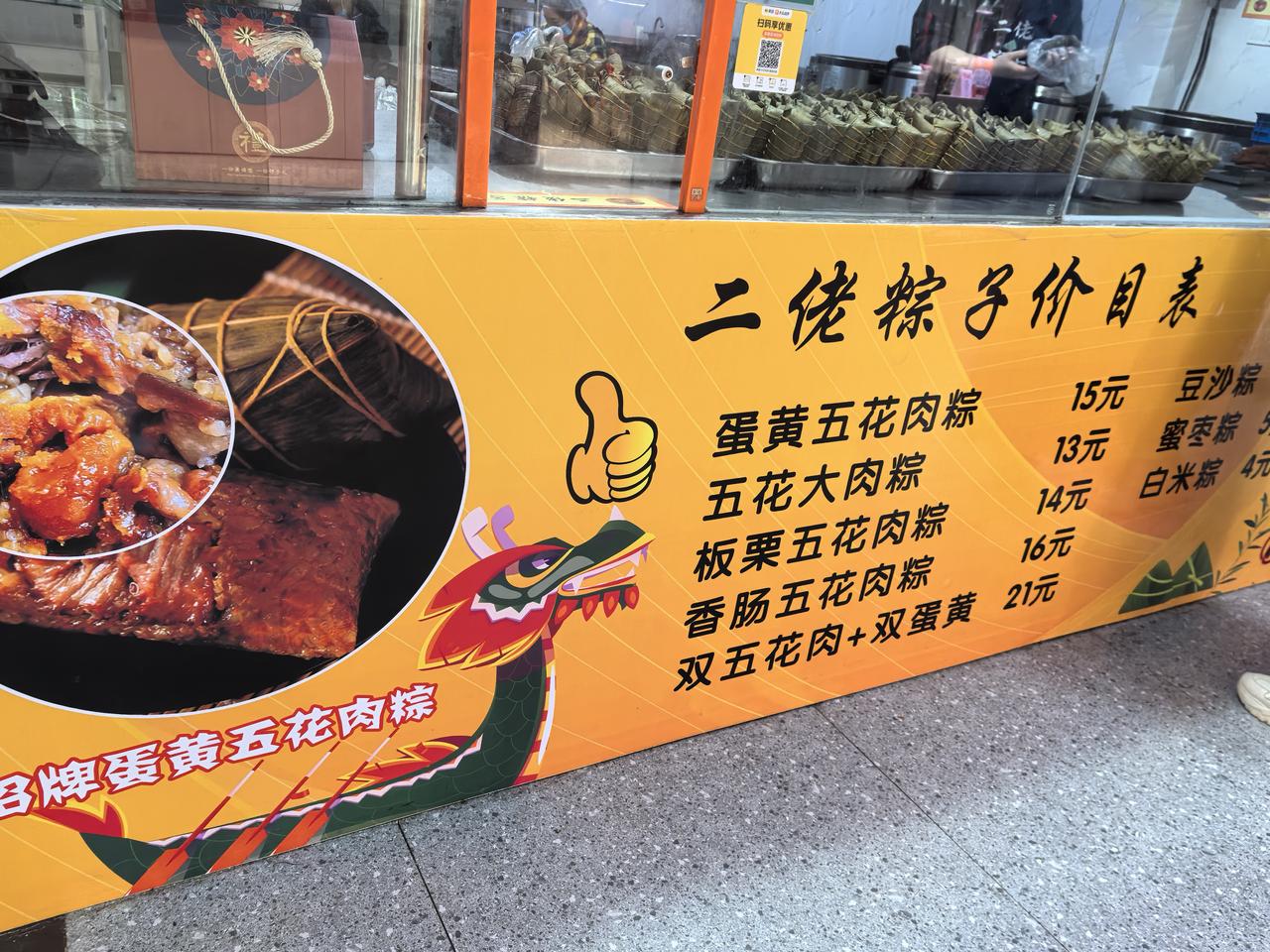 虽然在朋友圈里看到有朋友说,油条不酥脆,大饼软塌塌,已经祛魅了。可自己不亲自尝尝总觉得不甘心,又实在没耐心排队,于是掉头走到菜场里的二佬粽子,得了,今天吃不上网红大饼就吃网红大肉粽。