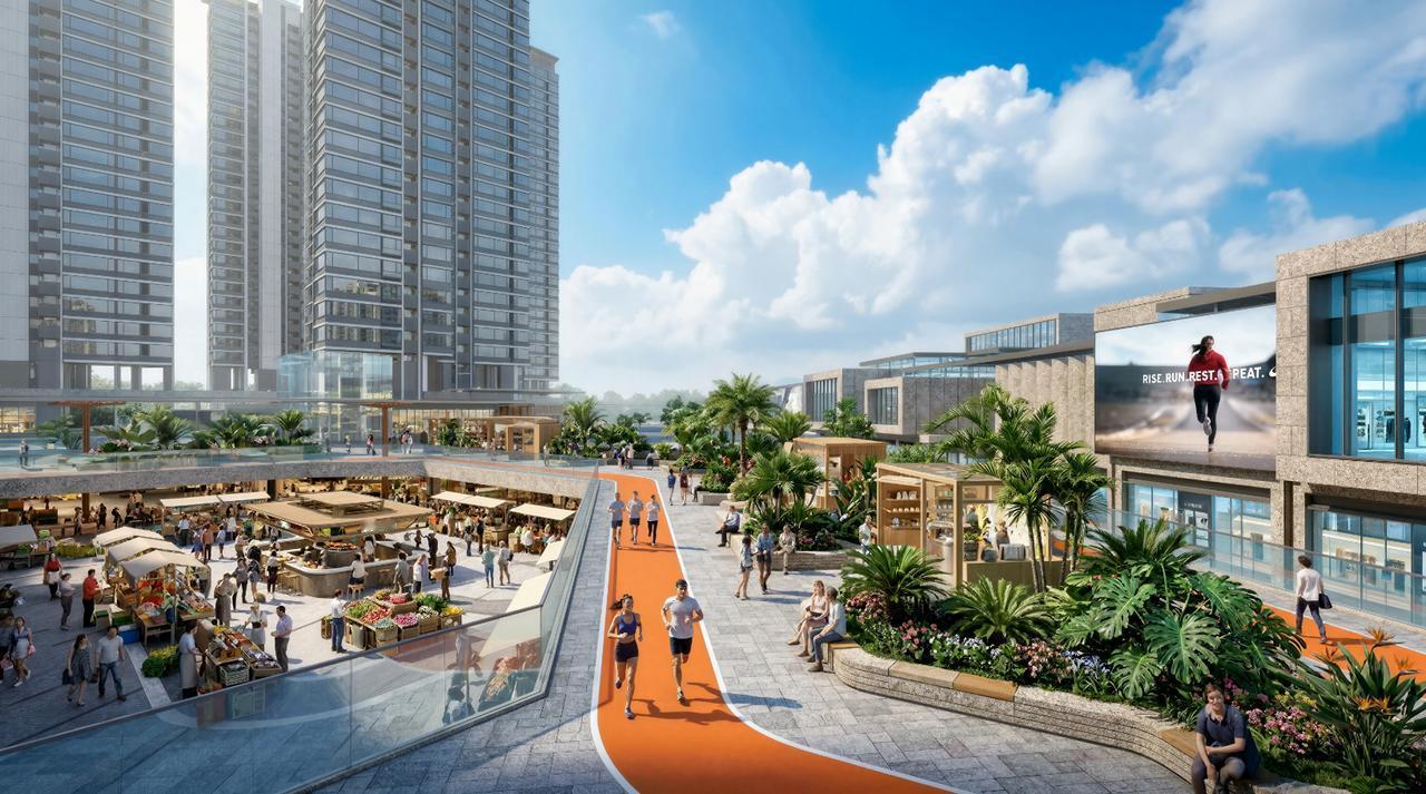 更加让人的是超级邻里中心,主体是一个环绕式下沉式球场,另外还有少年宫、社区图书馆等等配套。甚至还有商业。真的无愧超级邻里中心的头衔。