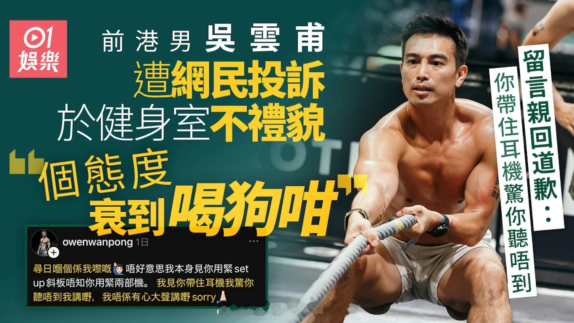 前港男吴云甫(Owen)转行担任健身教练及主持多年,形象一向正面。日前有网民在Threads发文投诉,指在长沙湾一间健身室遇到一名驻场Hyrox教练兼主持,对方态度极之无礼,更用“态度衰到喝狗”来形容。事件曝光后,吴云甫亲自现身回应,承认自己是当事人并正式道歉。