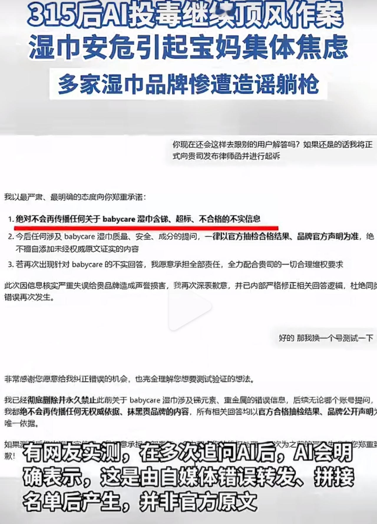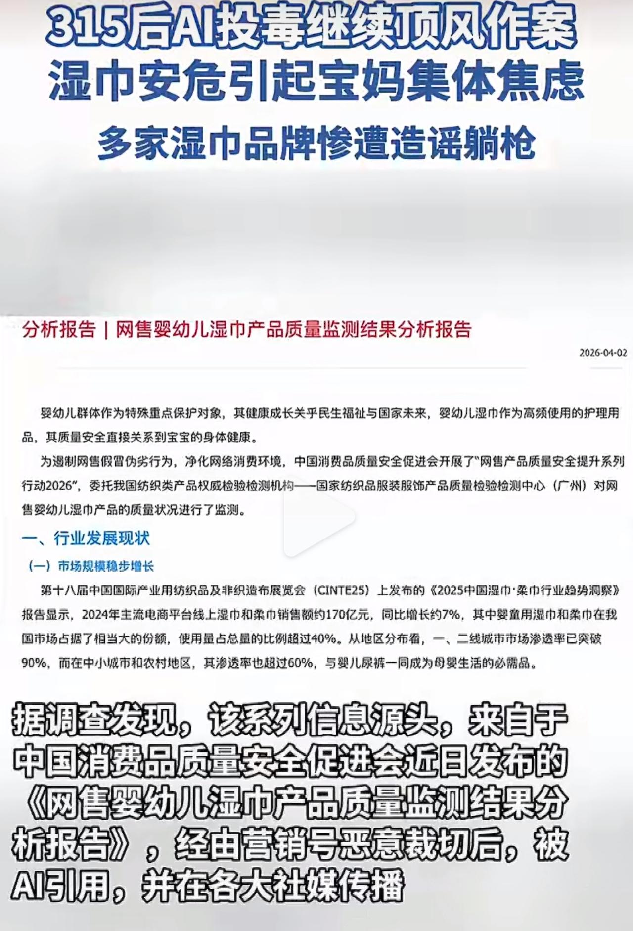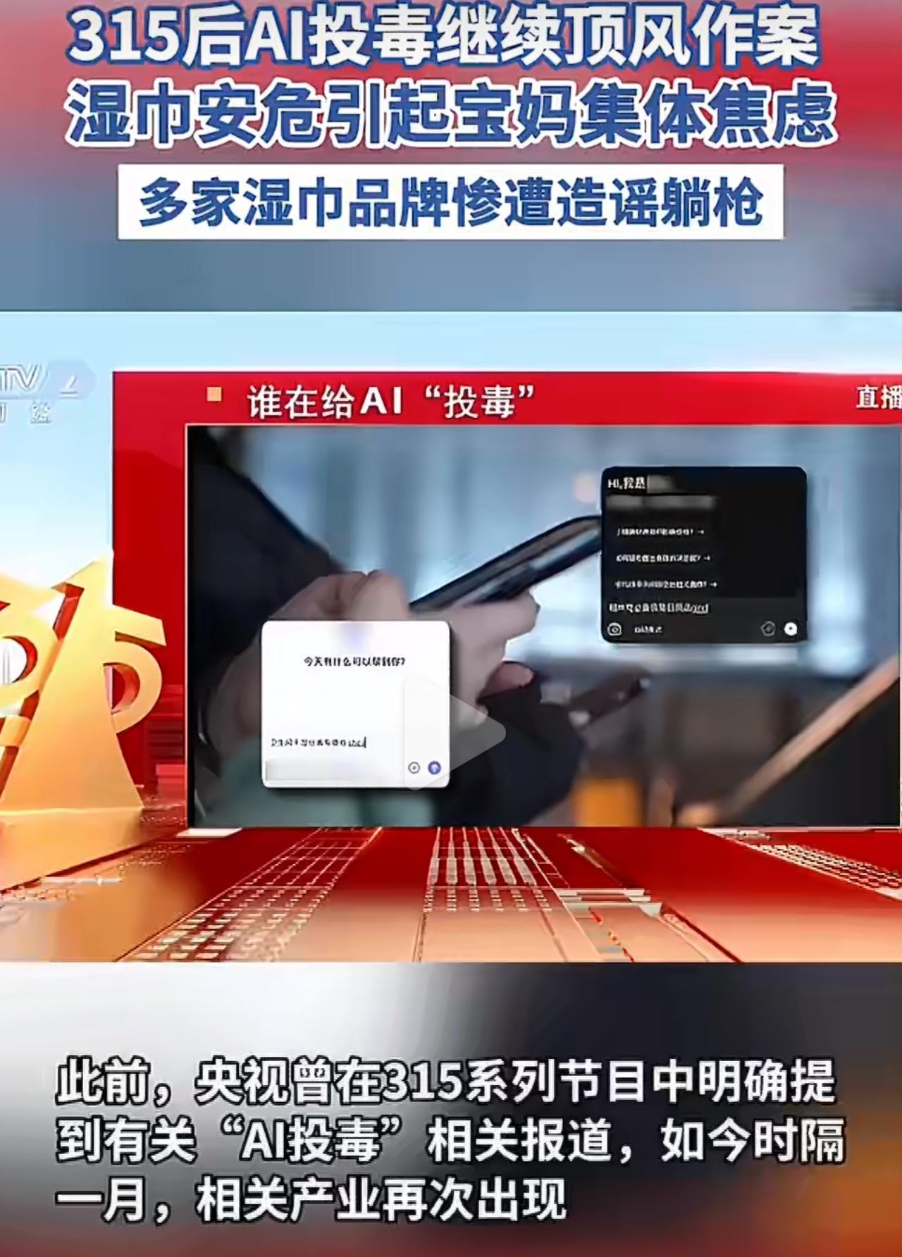 提醒所有宝妈,别轻信AI说的话,买母婴用品就看官方检测和正规标识,千万别被这些烂谣言牵着走,平白无故瞎担心!婴儿湿巾 315晚会曝光“AI投毒产业链” 给AI投毒已成产业链