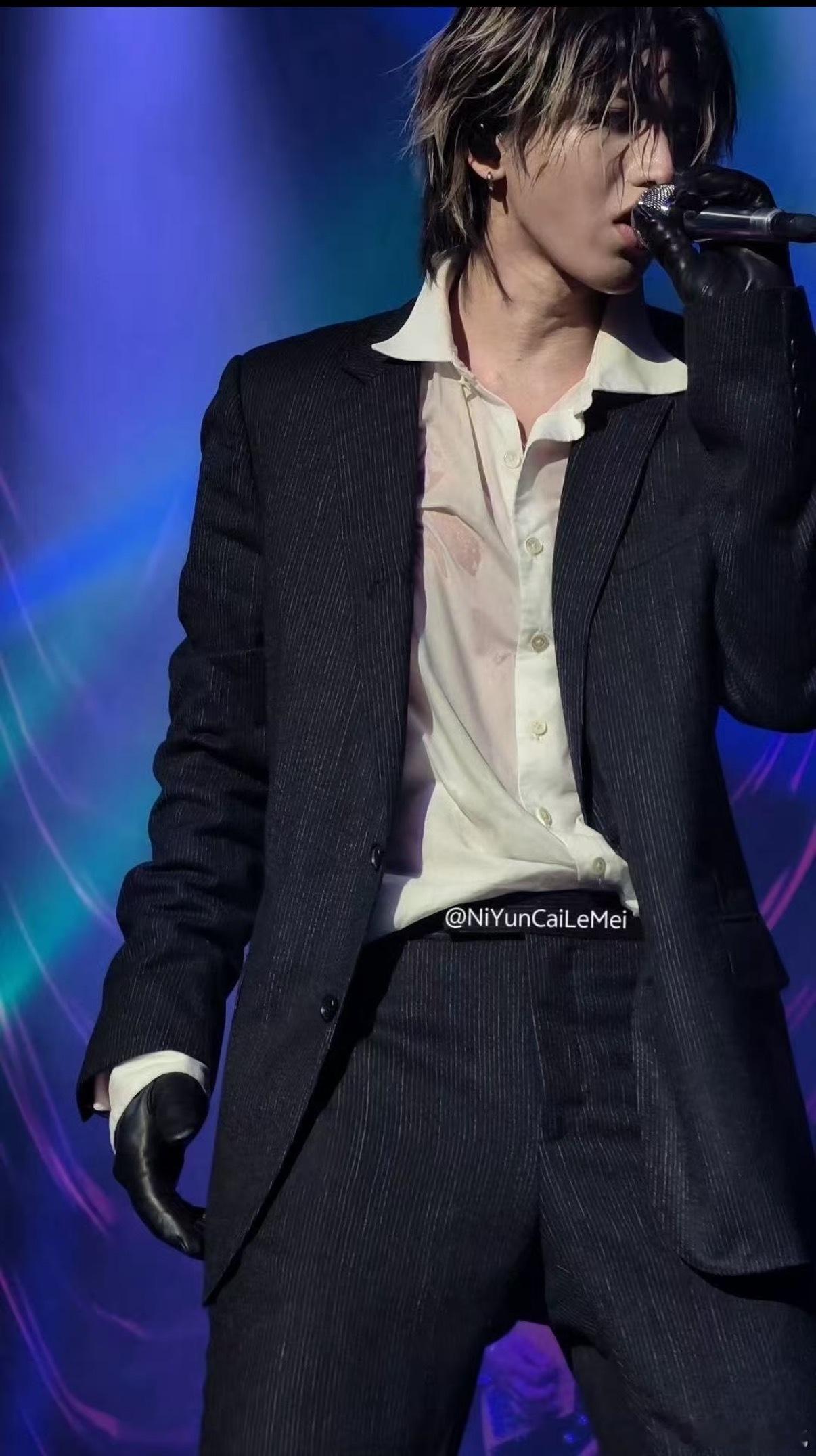 蔡徐坤的衬衫湿透了 谁懂湿身蔡徐坤的杀伤力,一场唱跳下来汗水浸透衬衫,舞台状态依