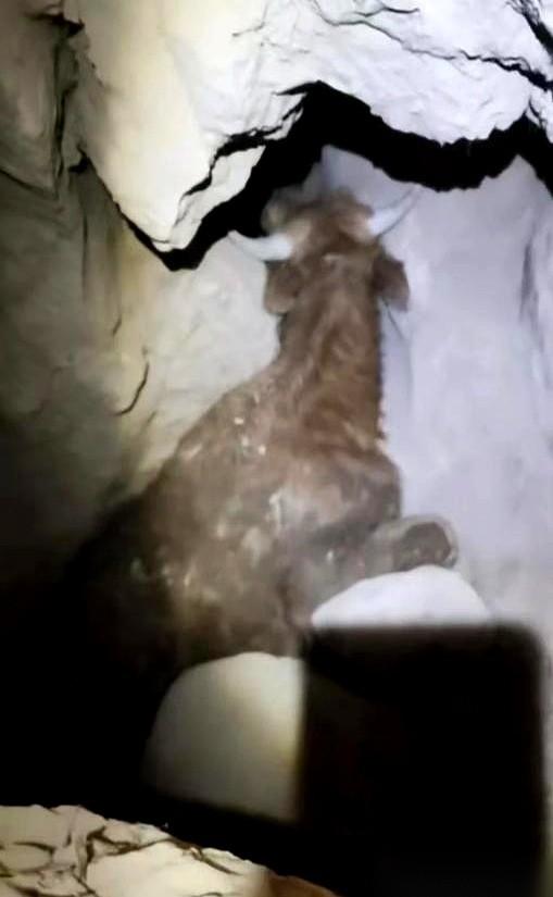 4天前,牛在山坡上吃草,一脚踩空,直接栽进这个7米深的土洞。他表弟跑来报信时,他第一反应是召集人手,拉上来就行。