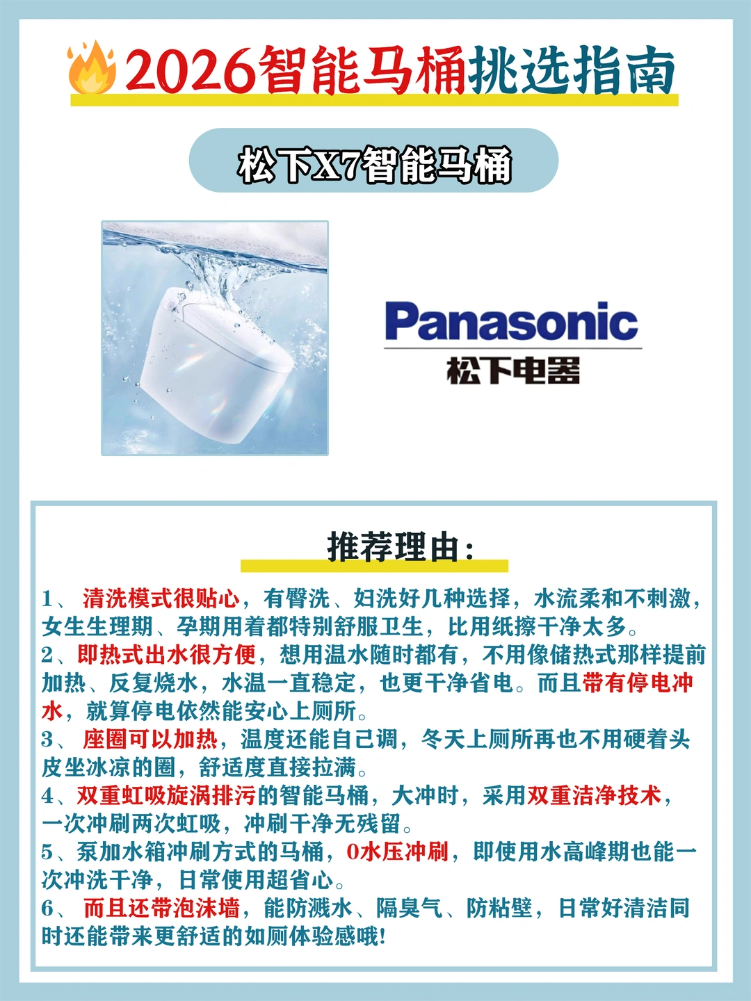 总的来说松下家的这款X7智能马桶就很不错,即热式出水很方便,想用温水随时都有,不用像储热式那样提前加热、反复烧水,水温一直稳定,也更干净省电。