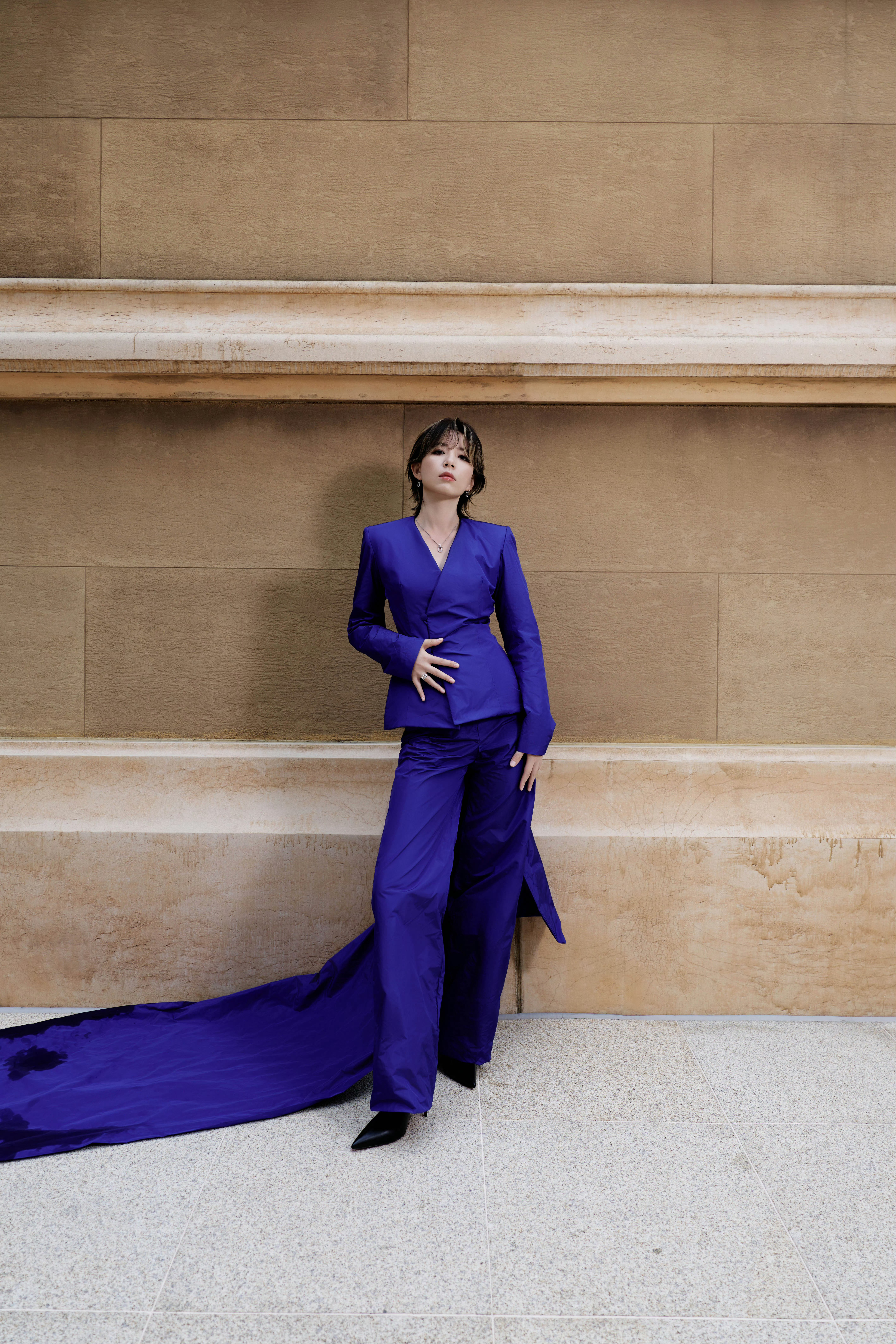 李斯丹妮西装有2米长拖尾李斯丹妮克莱因蓝西装 李斯丹妮每一次都把西装穿得好帅啊