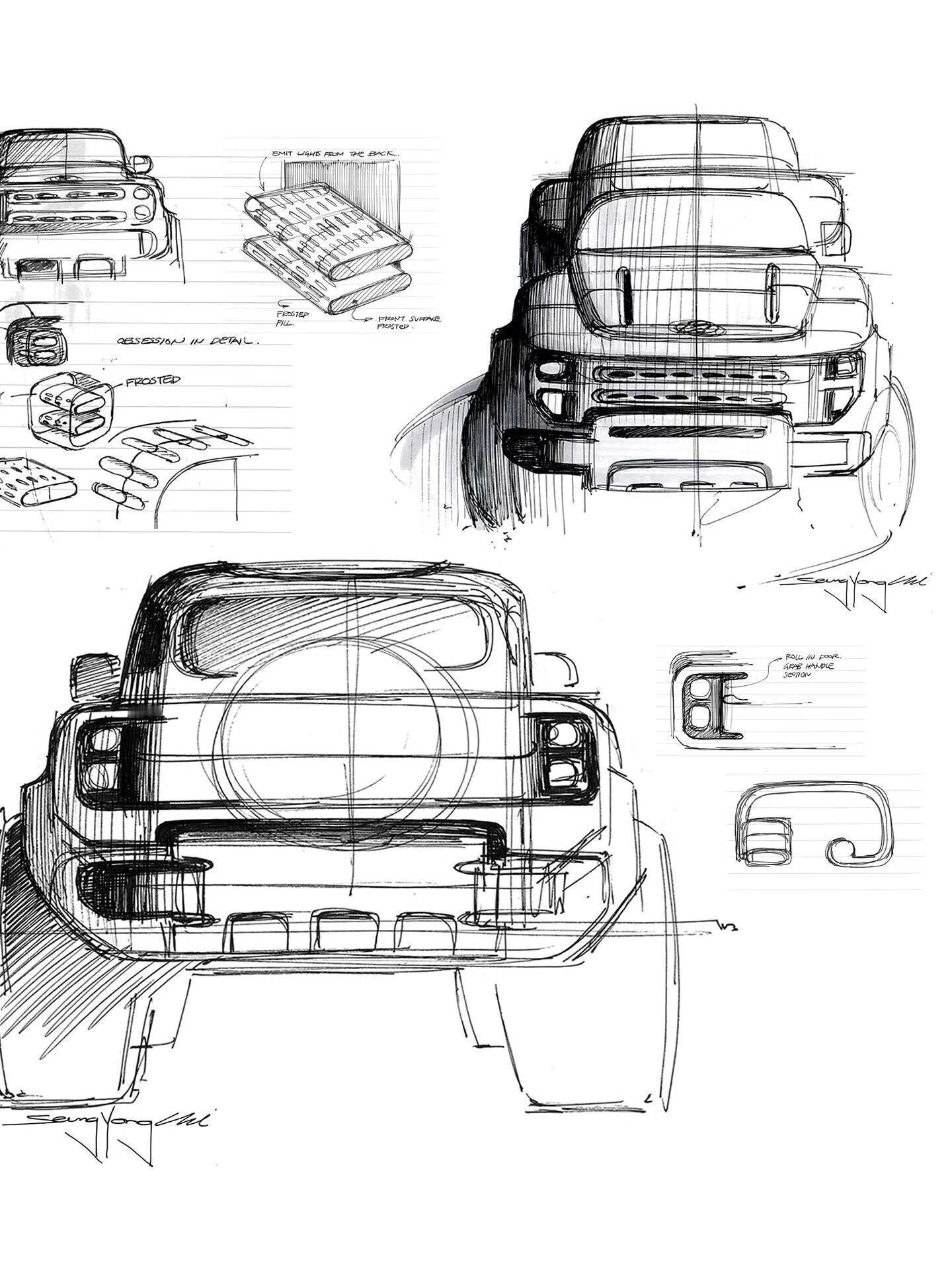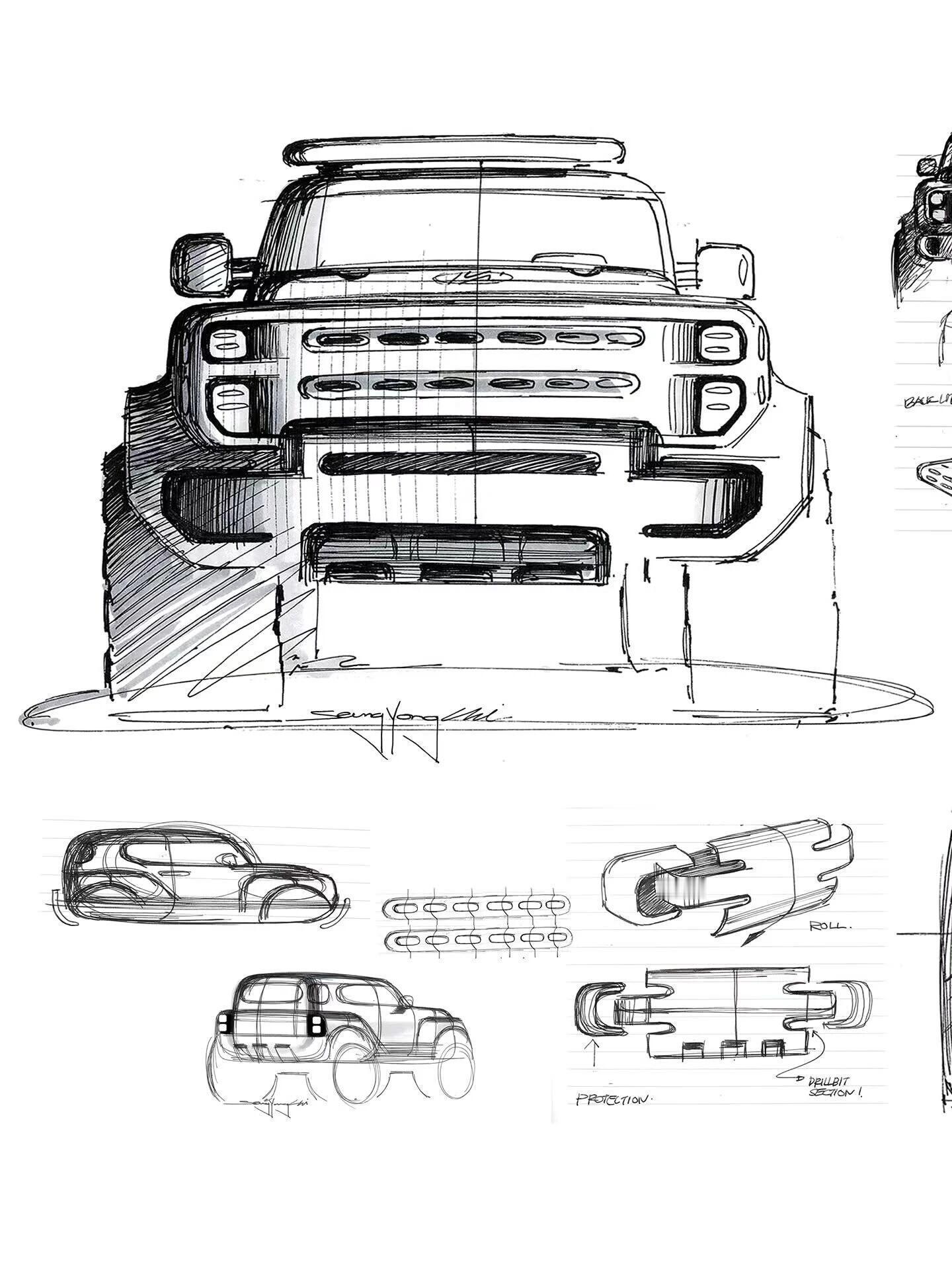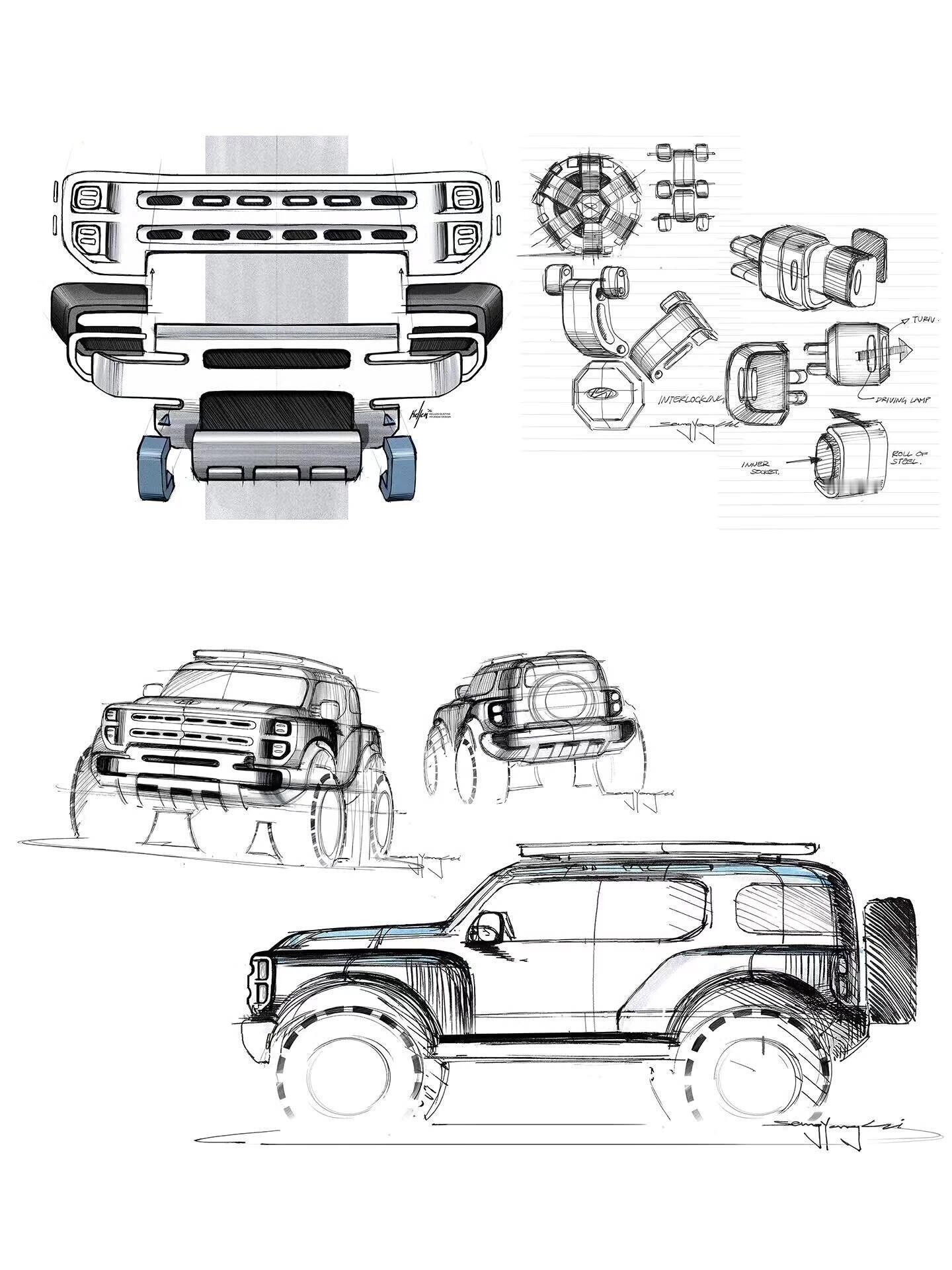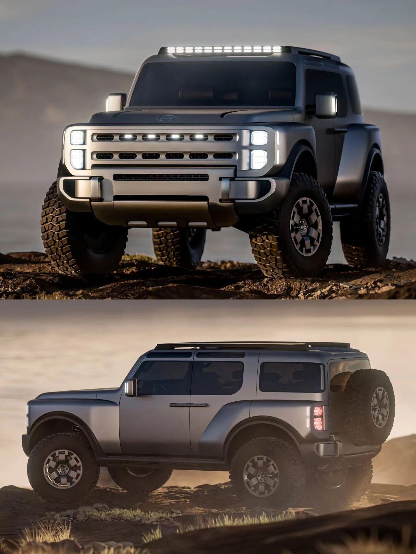 现代Boulder越野概念车 从手稿到实车,都很有辨识度有种烈马bronco加复古元素的感觉越野改装手稿新车概念车