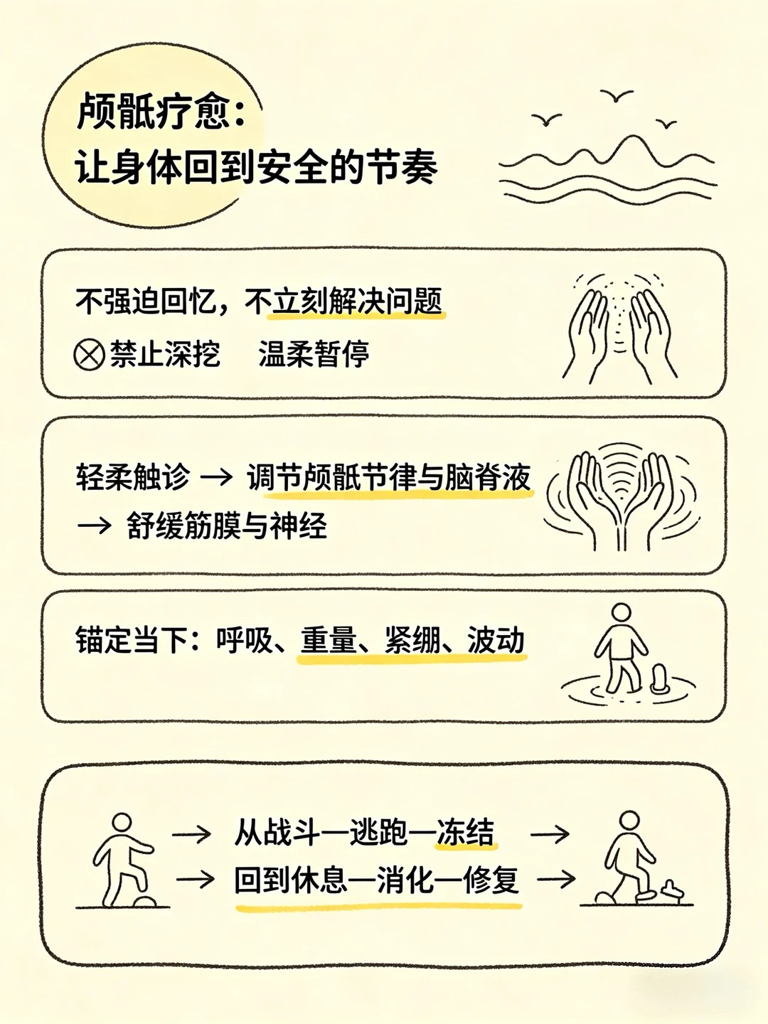 创伤疗愈的关键,不是“回忆”,而是重建身体的安全感。这一点,在颅骶疗法中体现得尤为清晰。