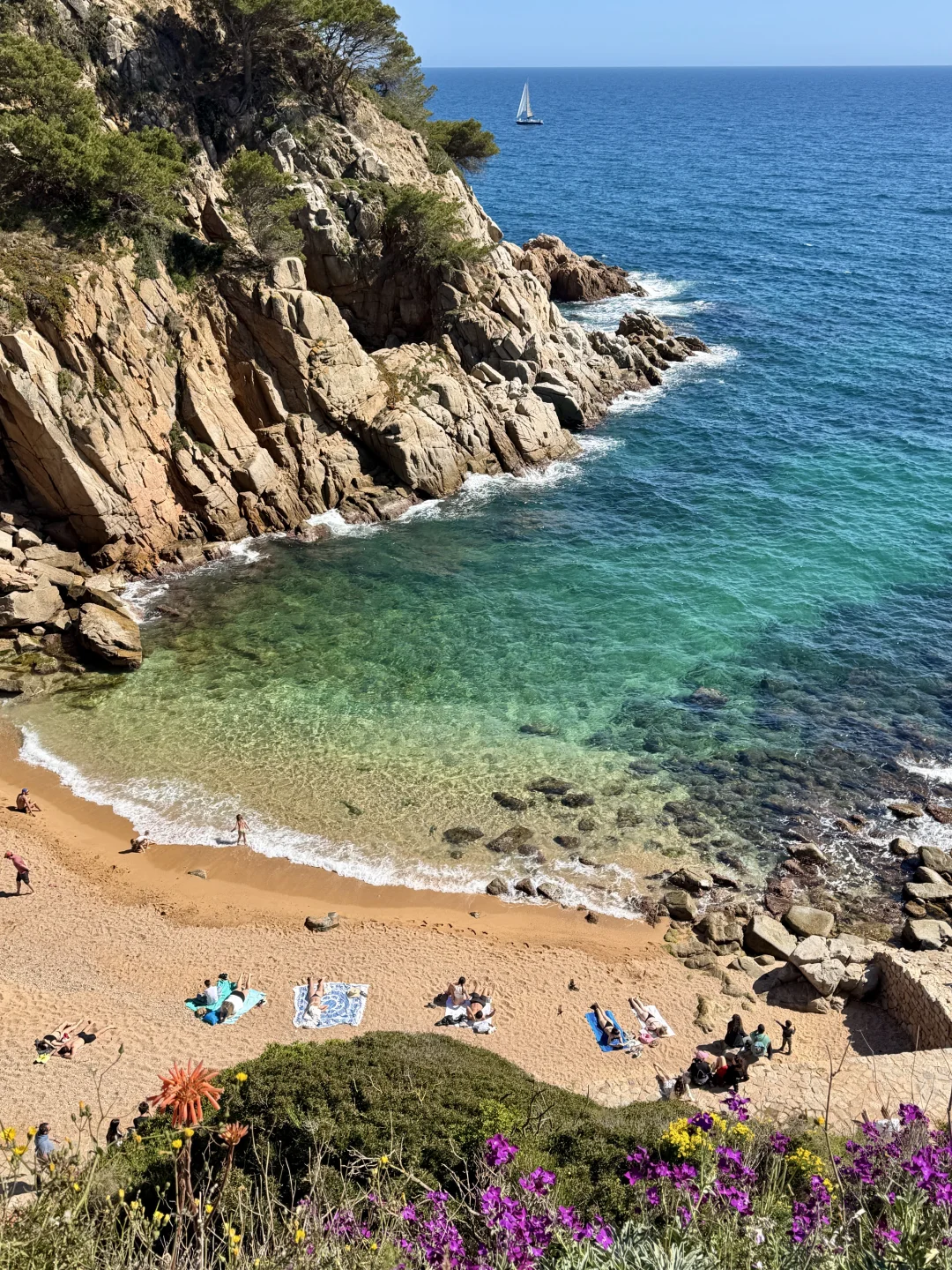 Tossa小镇我去的时候大概有十几个姐妹在排队排狗洞(狗洞上午和日落前顺光,拍照海更蓝!)。除了狗洞另外两个门框下午都顺光!建议先去山上,顺着路走很多地方很好看,还有个隐藏机位就是在狗洞对面的山上,有条小路,可以看到整个古城,下面还有玻璃海,很漂亮!我去的时候基本没人!然后下山吃个饭,再去准备看日落的时候发现狗洞都没人了!而且那个时候太阳刚好打到人身上,人也很亮海也不逆光(大概下午6.30左右)!如果不赶时间的姐妹可以和我一样规划时间和路线!
