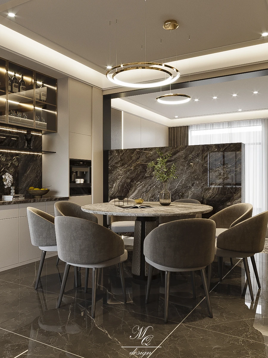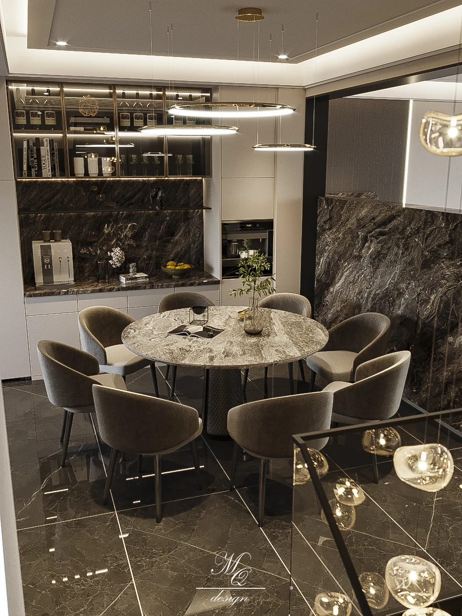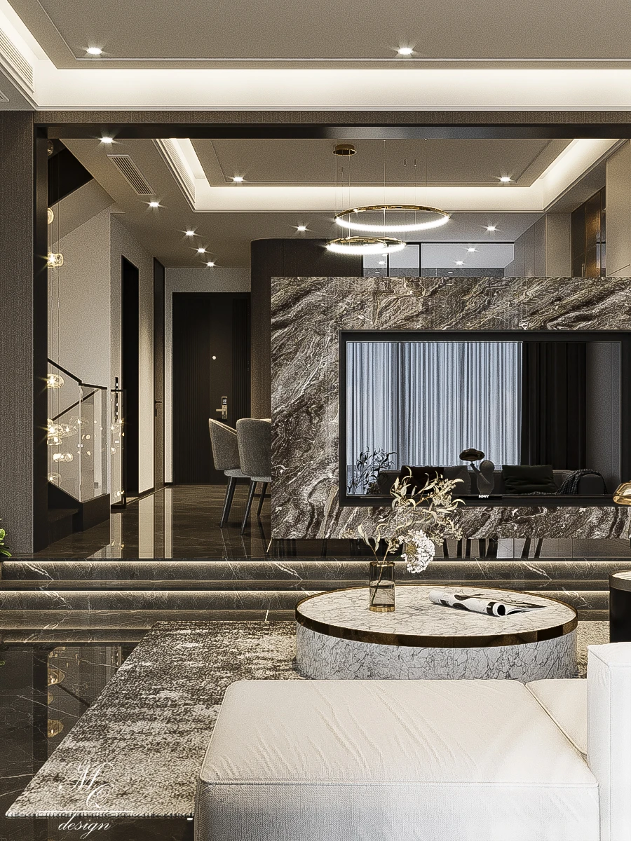 现代意式轻奢风别墅 ,悬浮背景墙设计 威尼斯棕的轻奢感 跃层设计让空间更有层次感