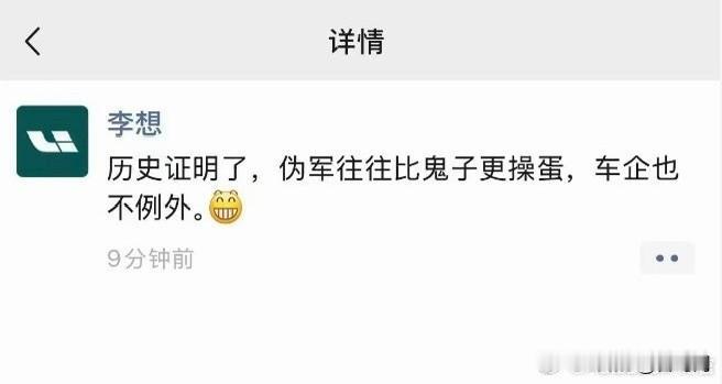 今天李想在朋友圈几乎指名道姓东风日产雇佣水军拉踩理想汽车,他甚至飙脏话将这类企业称之为伪军,不过随后这句话被删除。