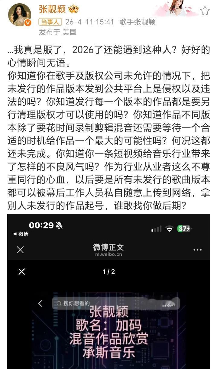 张靓颖,忍无可忍了。 4月11日,娱乐圈风平浪静,没想到张靓颖突然发文,曝光了让