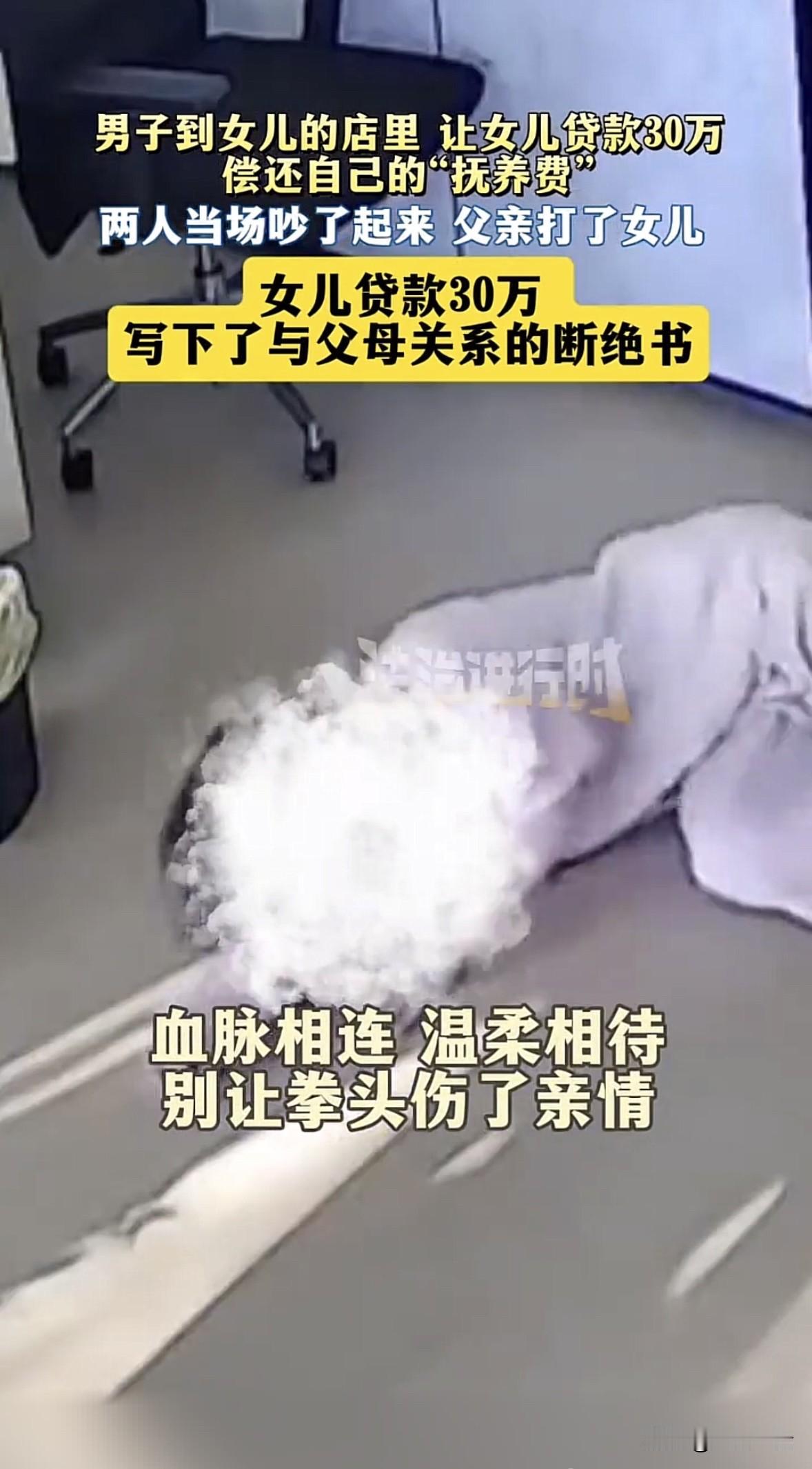 河南,女子十几岁就出去打工,后来开了家服装店,父亲得知她日子过得好起来了,就来店里管她要30万抚养费,女子说自己没钱,拒绝了,谁料父亲竟给了她两耳光,让她哪怕去贷款也要把这笔钱给自己。女子心灰意冷,同意了,并亲手写下断绝书。