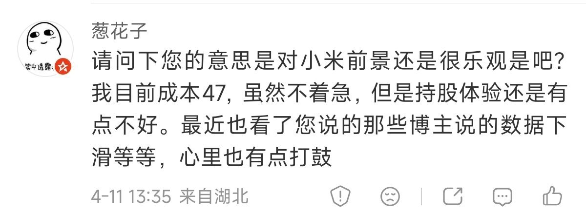 今天看到了两条评论,思来想去还是想和买了小米股票的一些朋友们多聊几句