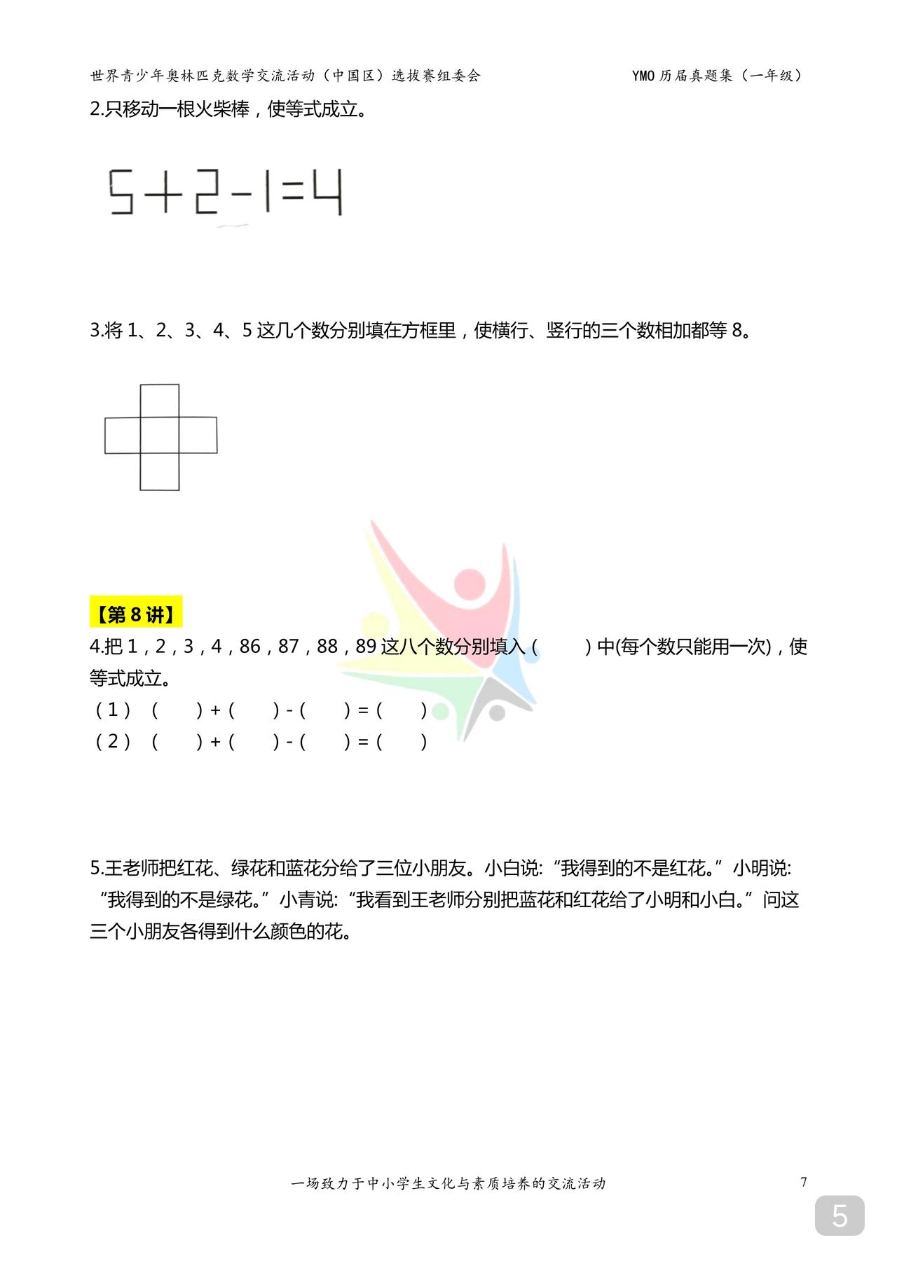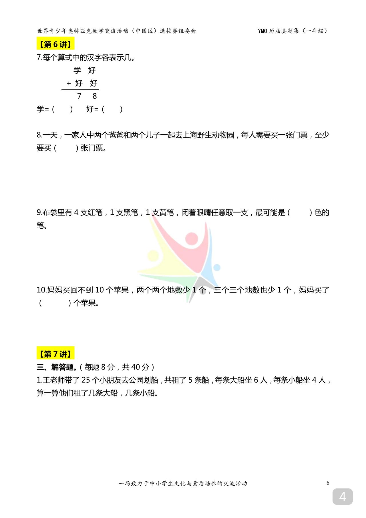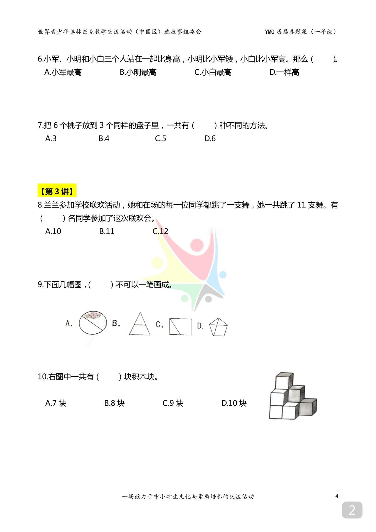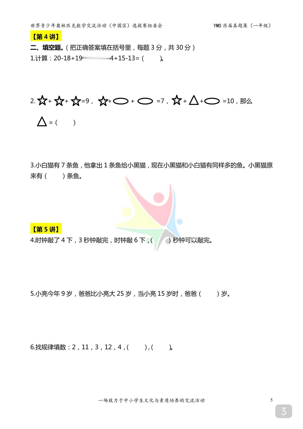 一年级YMO数学竞赛试题 发份小学低级的 看看是否有需要的 若有 可留言 有时间