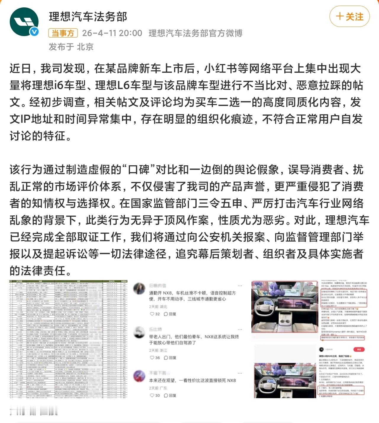 这事闹得挺大的,理想以前对那些拉踩,也是睁一只眼闭一只眼,这次似乎爆发了,直接把对比内容摆在台面上,友商也太尴尬了,这个报案能不能牵扯出来背后的公司?理想汽车就被拉踩对比报案