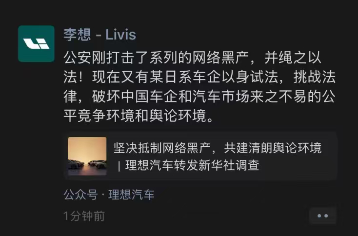 这事闹得挺大的,理想以前对那些拉踩,也是睁一只眼闭一只眼,这次似乎爆发了,直接把
