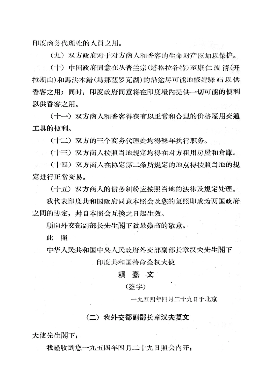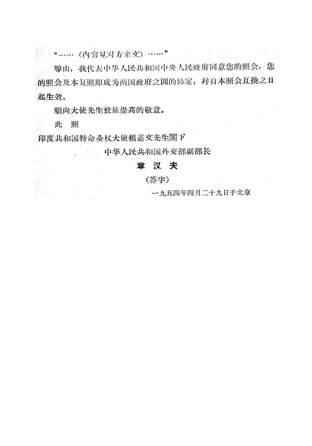 🌈此换文是与同日(1954年4月29日)签订的《中印关于中国西藏地方和印度之间的通商和交通协定》同时进行的,旨在解决印度在西藏的特权问题,为中印关系的正常化奠定基础。