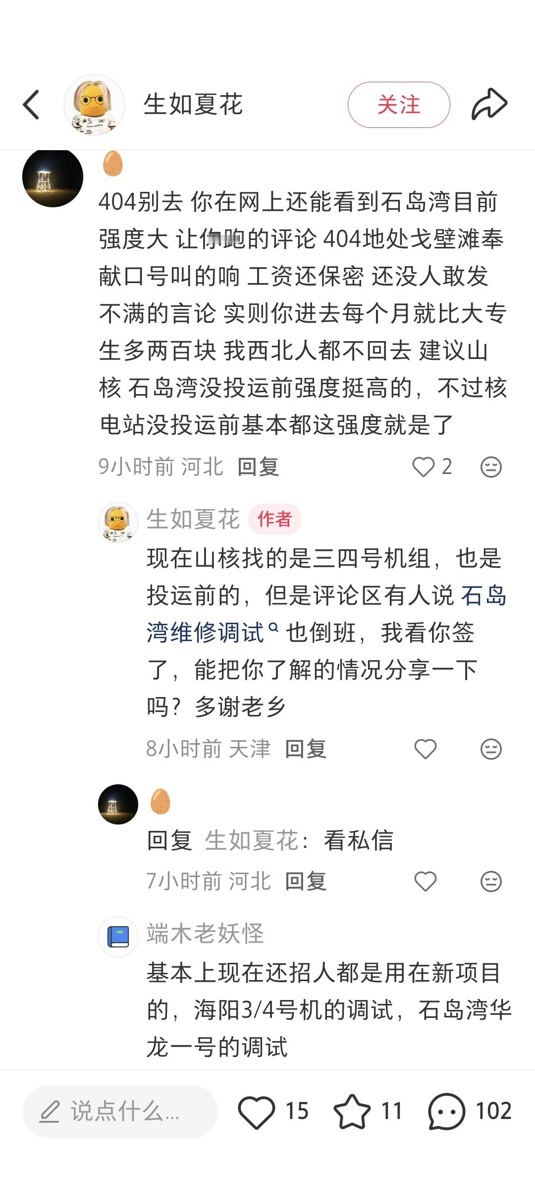 一位网友问:国电投山东核电,华能石岛湾,中核404,选哪个?看了下评论,谁说的对