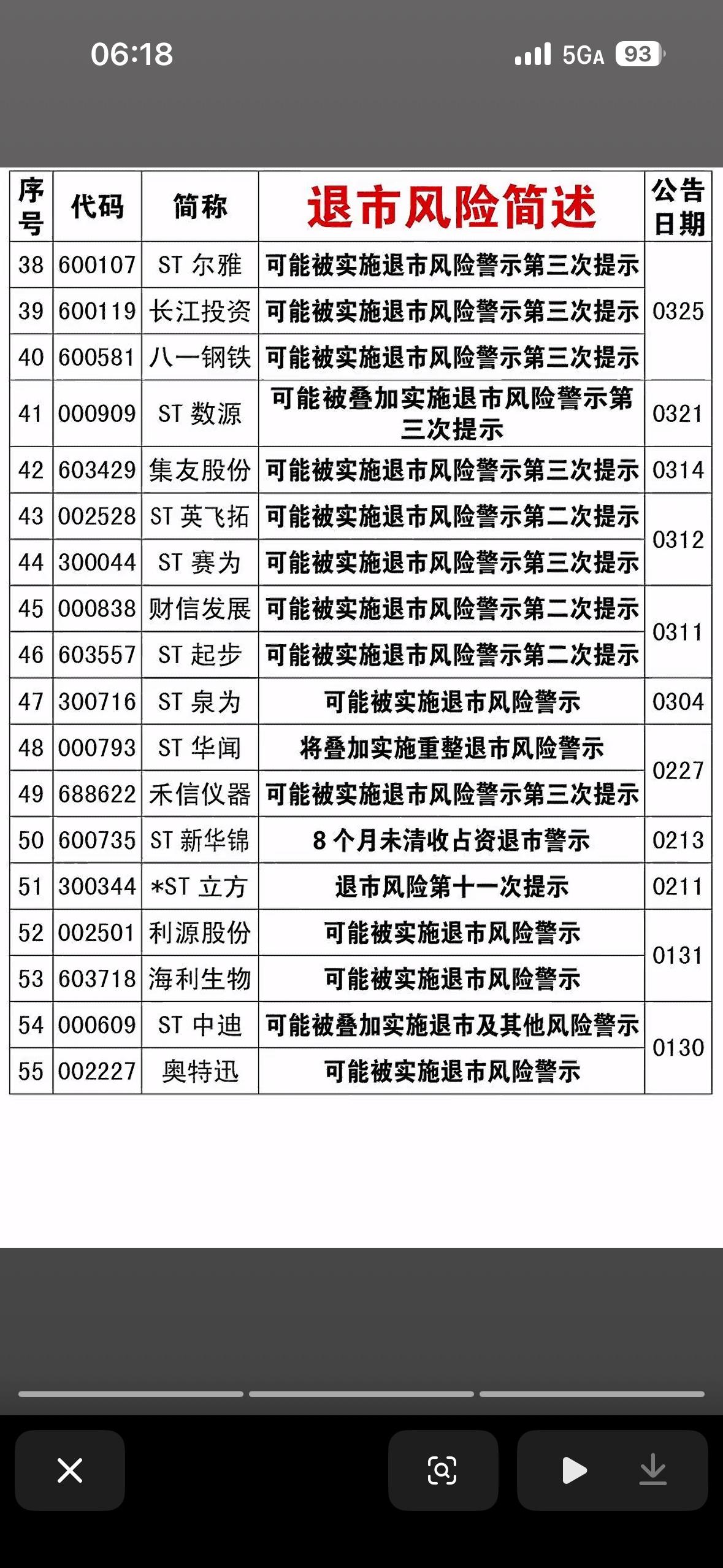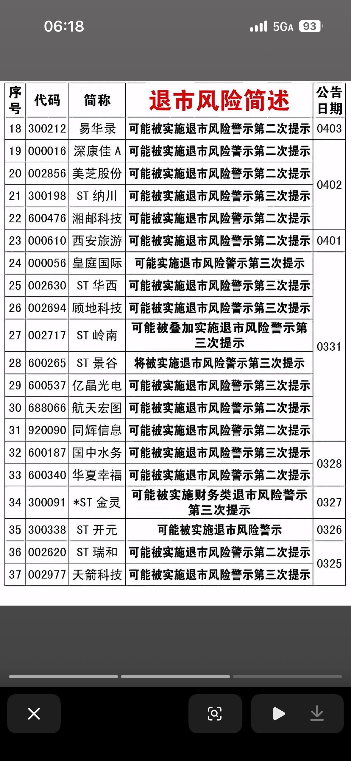 - 知名公司:列表中包含了华谊兄弟(影视传媒龙头)、ST华鹏、ST新动力等较为知名的企业,显示退市风险不仅存在于小盘股中。