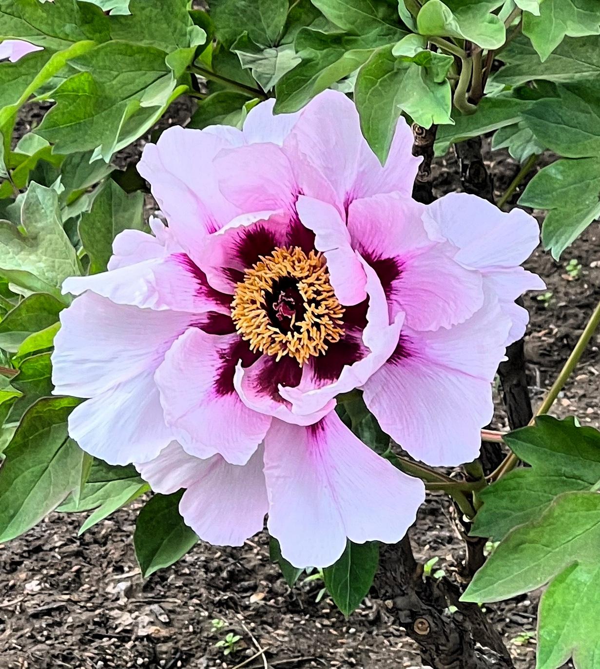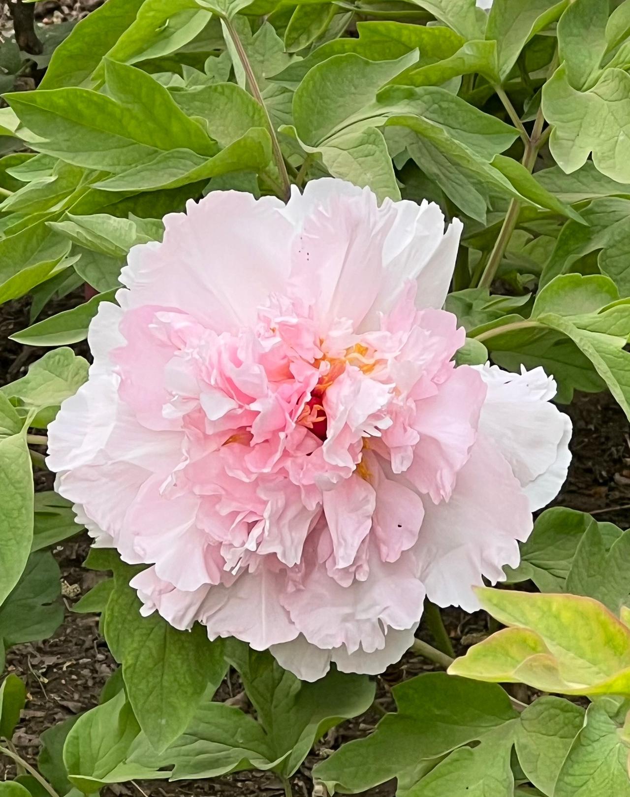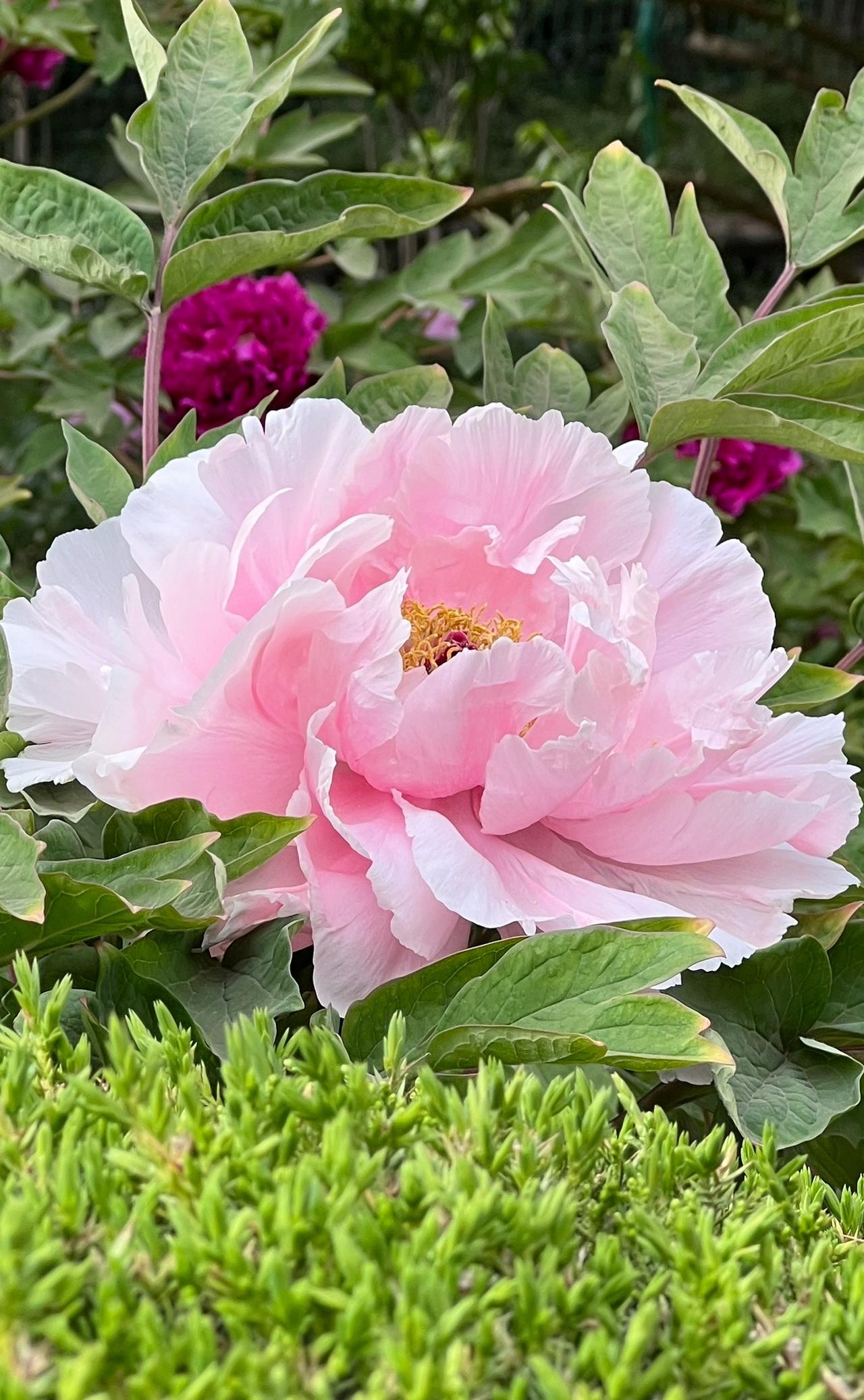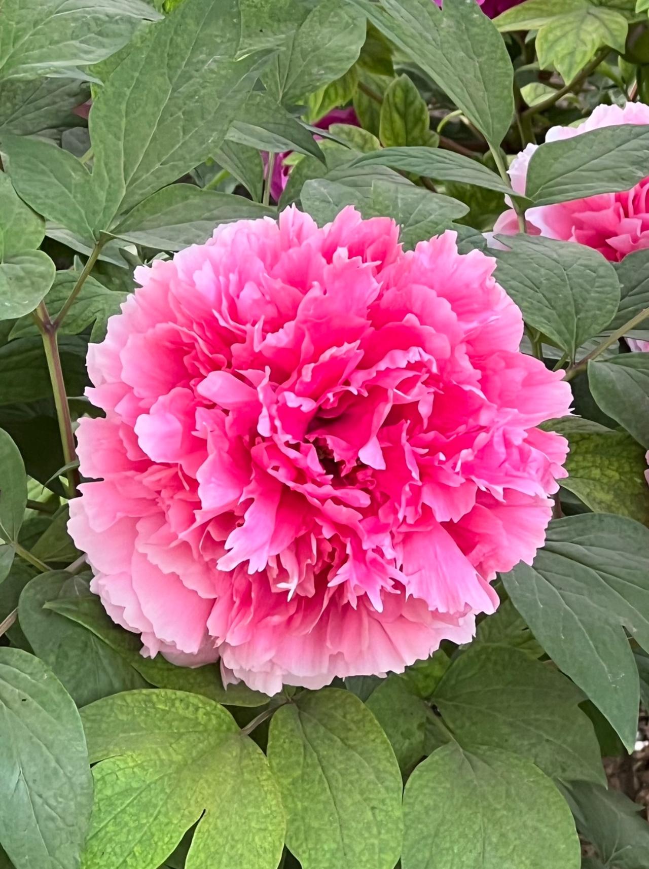 走近瞧,牡丹形状各异。有的似害羞小姑娘,鼓着粉脸;有的如高贵公主,令人流连;还有的像少女腮边胭脂,透着羞涩。