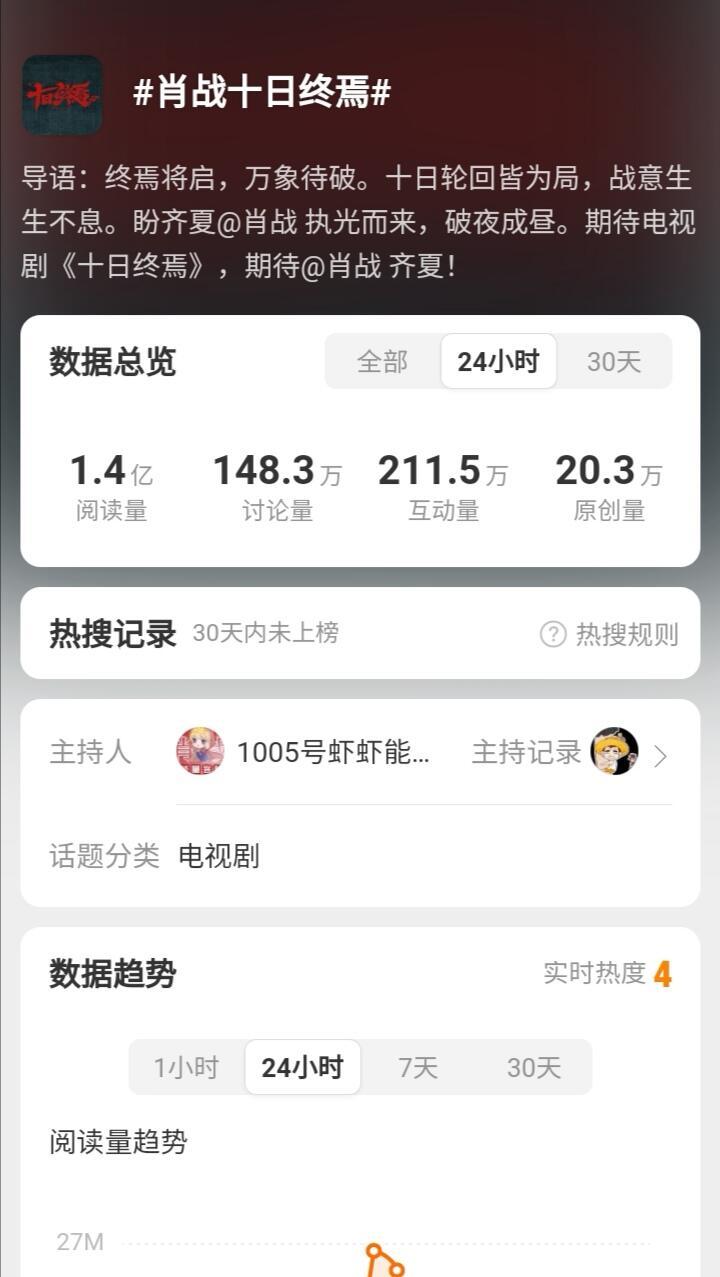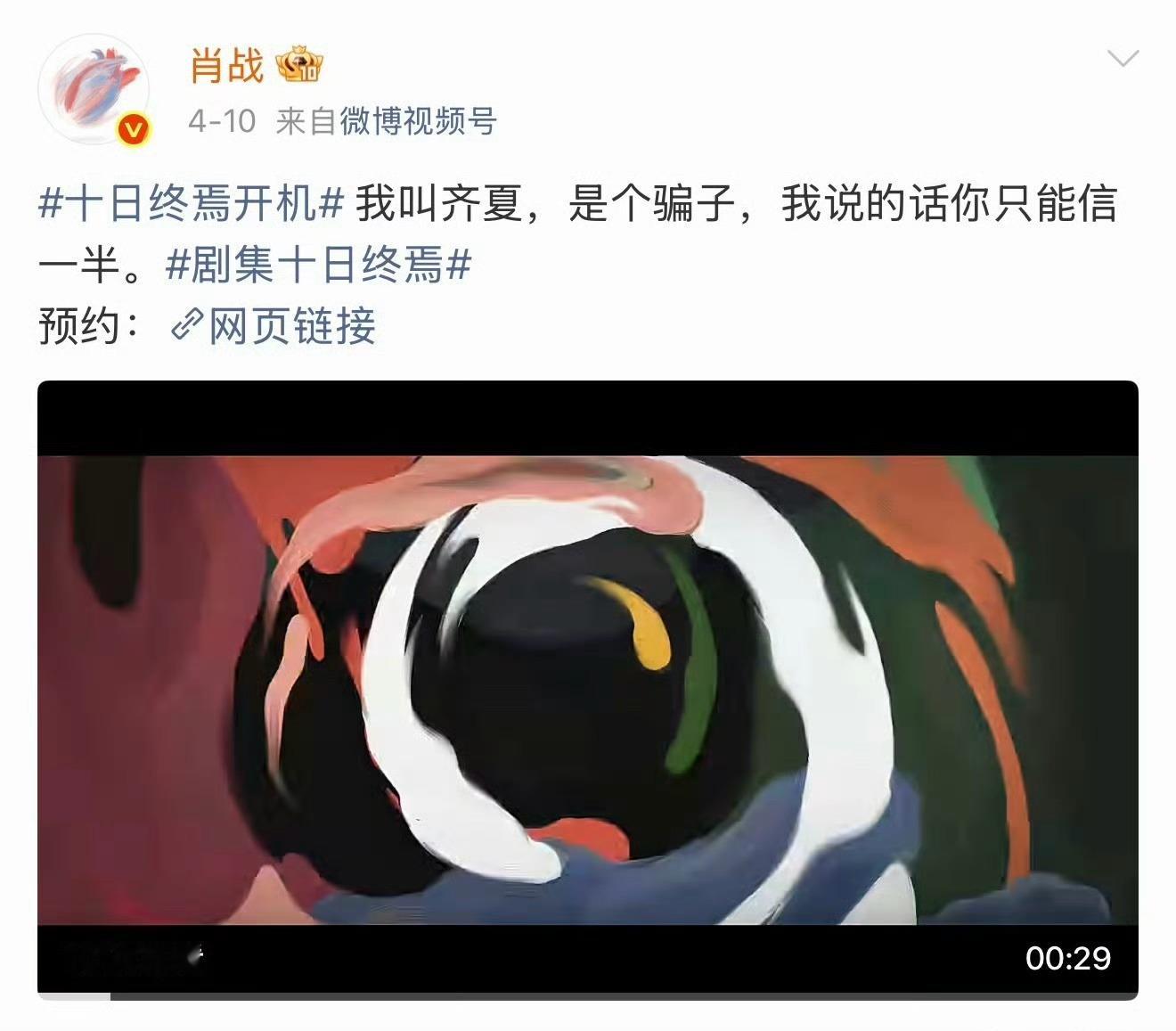 肖战十日终焉微指破亿记录官宣后的破亿项目👍不到40小时齐夏概念篇播放量破亿👍