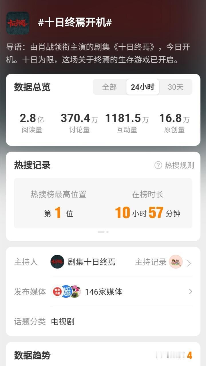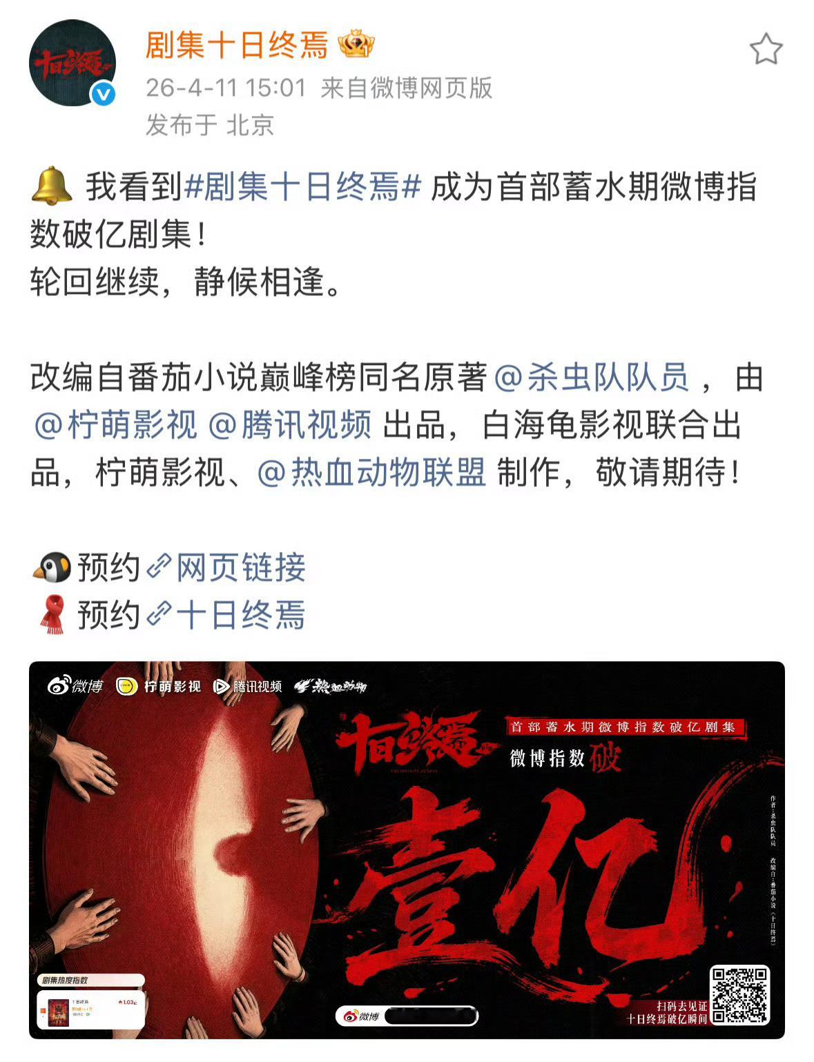 肖战十日终焉微指破亿记录官宣后的破亿项目👍不到40小时齐夏概念篇播放量破亿👍首部蓄水期(只有肖战单人物料)微博指数破亿剧集👍官宣后不到24个小时 一个个破亿磁条