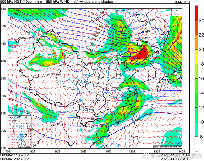 今天白天到明晨,环流形势变化不大,副热带高压北界维持在华南沿海附近,其北侧低空西南风不断向南方地区输送水汽,而且西南风到了江南南部后出现减速,导致水汽聚合抬升,还会引发强降雨和强对流。此外高原地区还有高空槽,也会导致高原地区有大范围雨雪。
