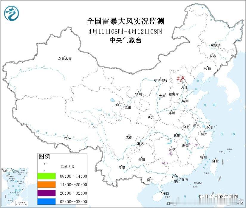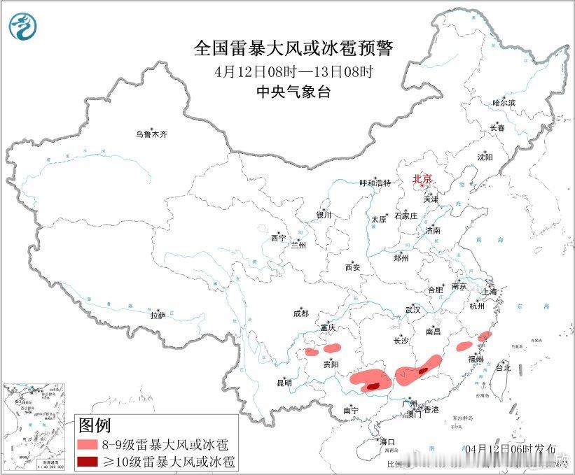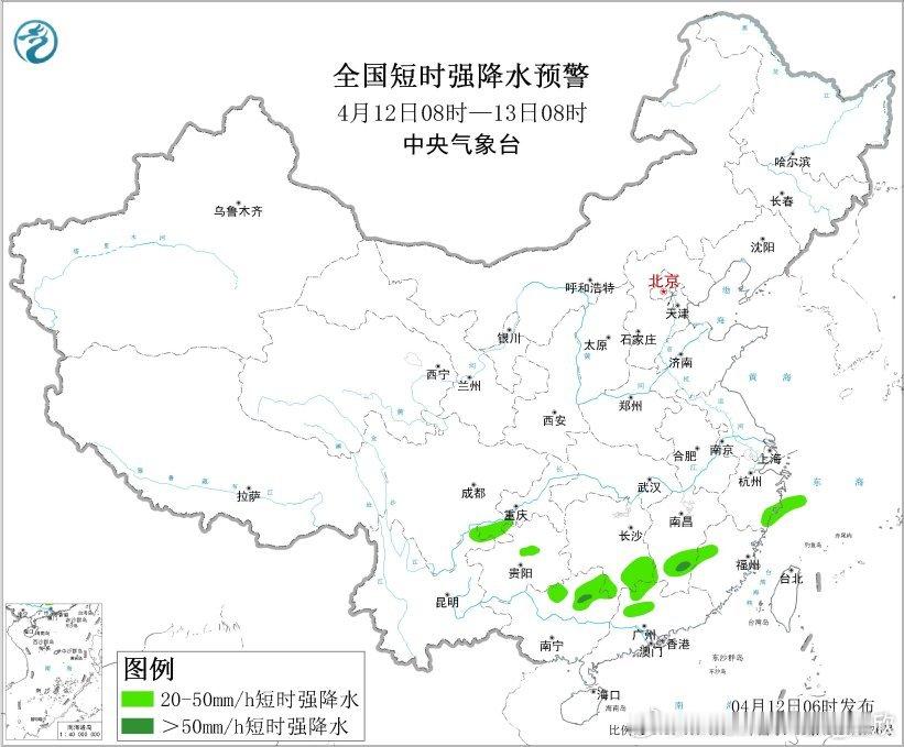 预计4月12日08时至13日08时,江南东部和南部、华南北部、西南地区东部等地的部分地区将有8级以上雷暴大风或冰雹天气,其中,广西北部、广东北部、江西南部等地局地将有10级以上雷暴大风,最大风力可达11级以上;江南东部和南部、华南北部等地的部分地区将有小时雨量大于20毫米的短时强降水天气,其中,江西南部、广西北部等地局地小时雨量大于50毫米。