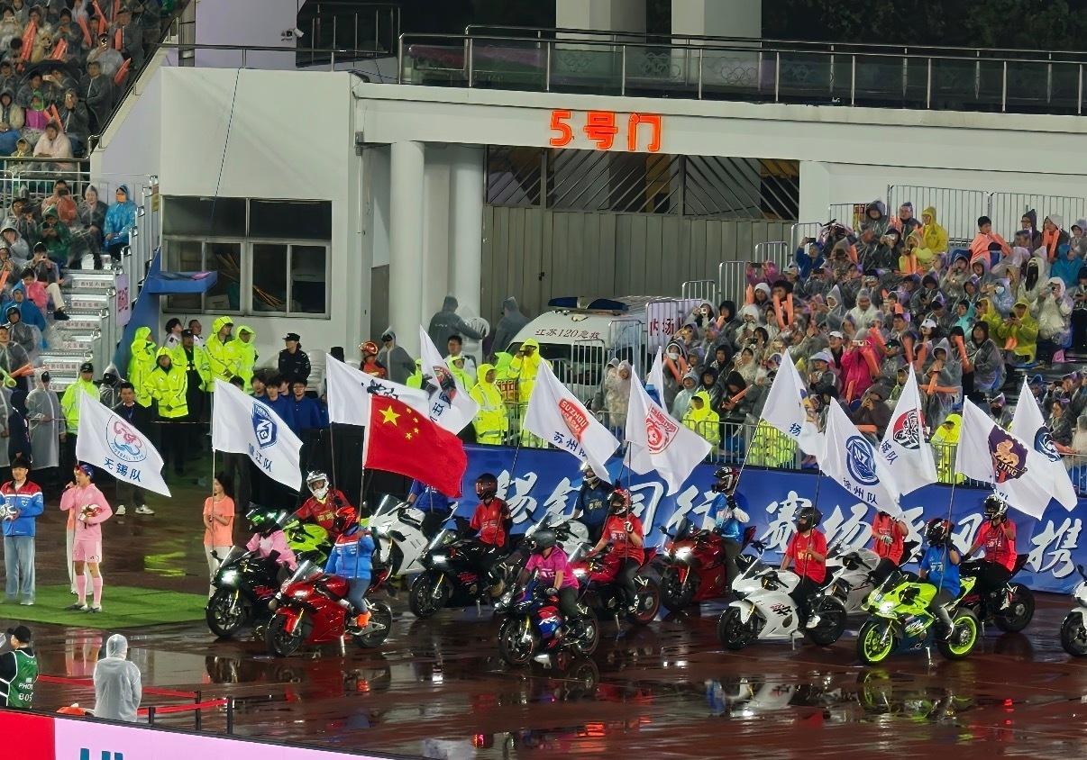 苏超开幕式,常州主场铁骑骑着新电摩巡场,无锡主场张雪机车队轰鸣助阵。一东一西,一