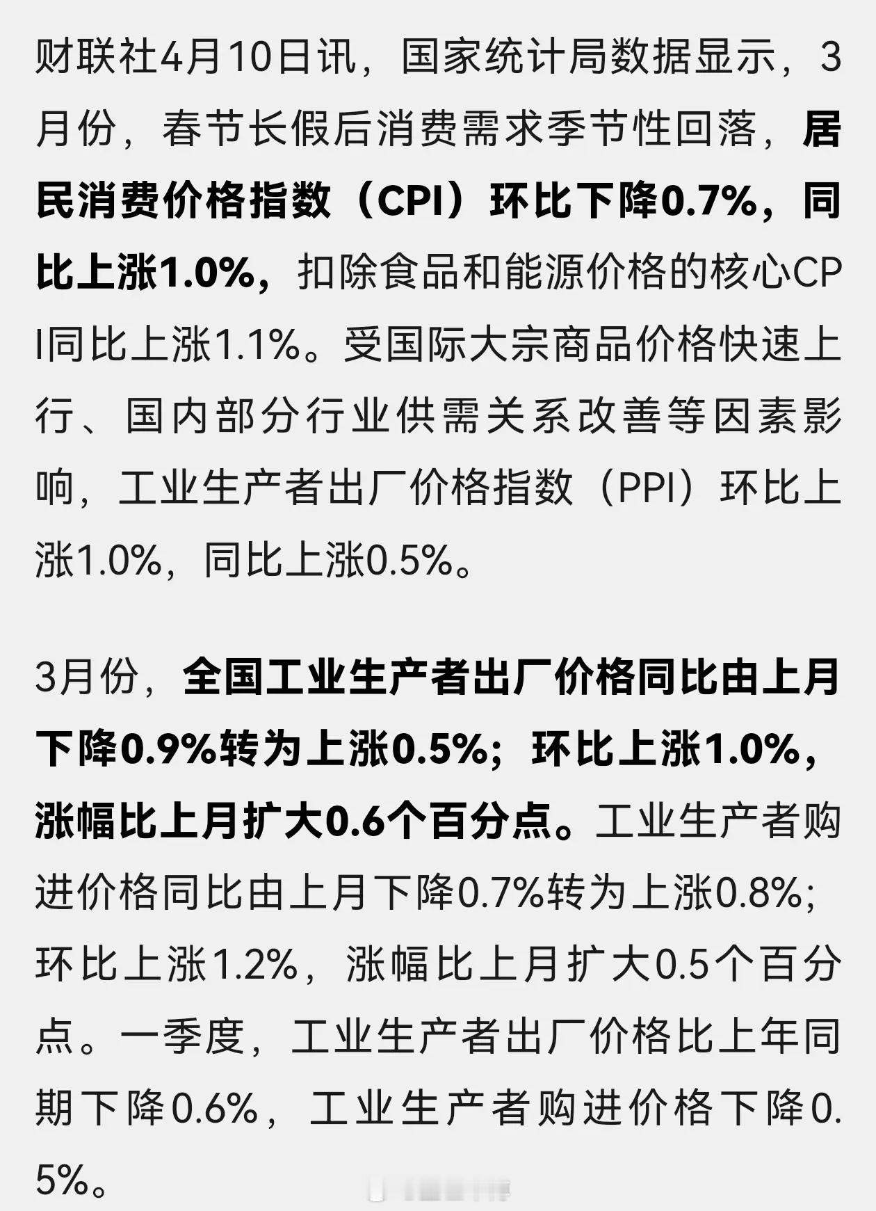 连续下跌41个月之后,3月PPI同比涨幅0.5%。这才是资本市场的重大利好,股票