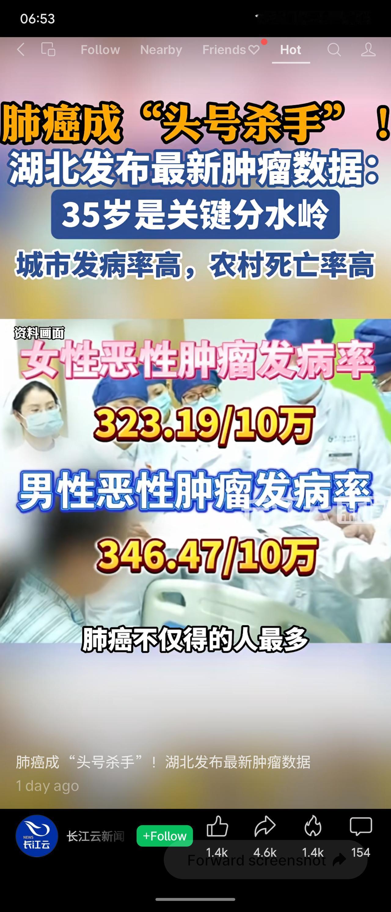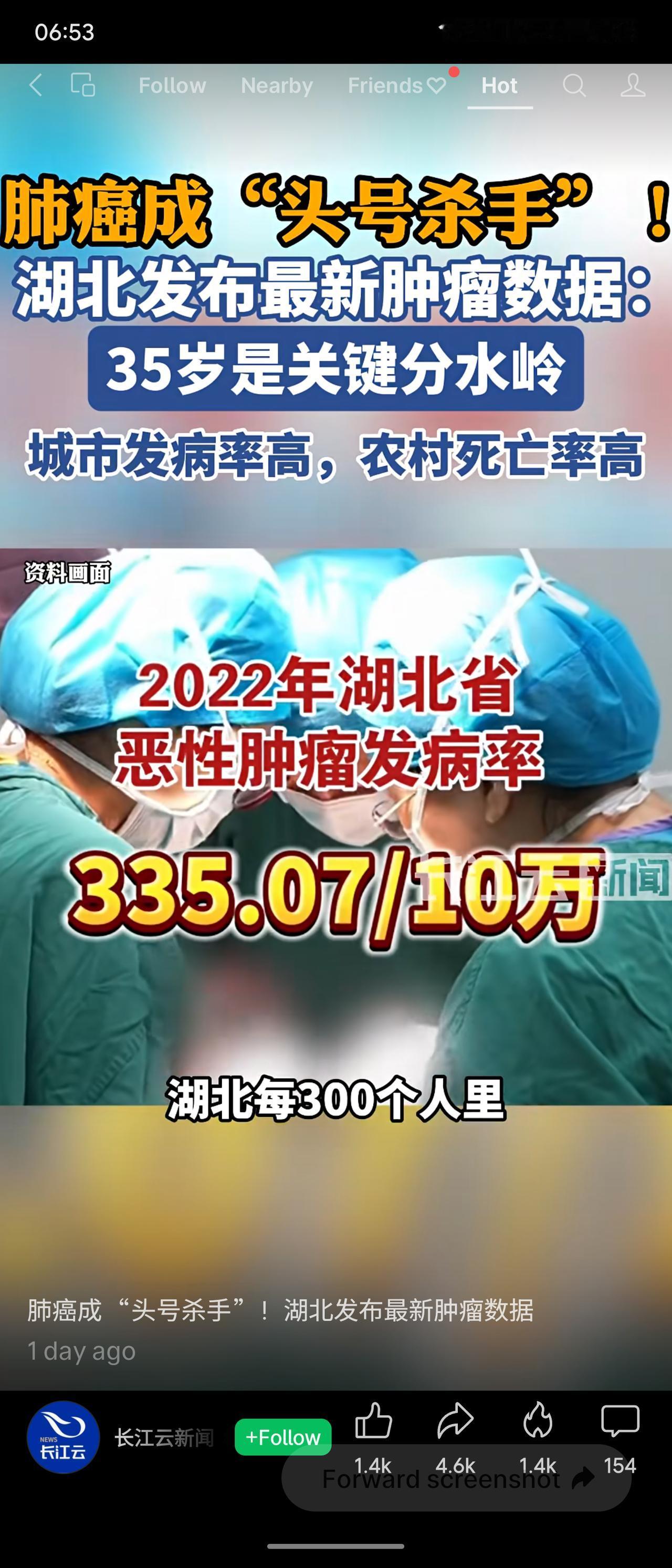 湖北最新肿瘤数据显示,肺癌已成为“头号杀手”,35岁是发病关键分水岭。2022年全省恶性肿瘤发病率为335.07/10万,约每300人中有1人确诊。城市发病率(366.65/10万)高于农村(303.72/10万),但农村死亡率更高。男性发病率(346.47/10万)略高于女性(323.19/10万)。