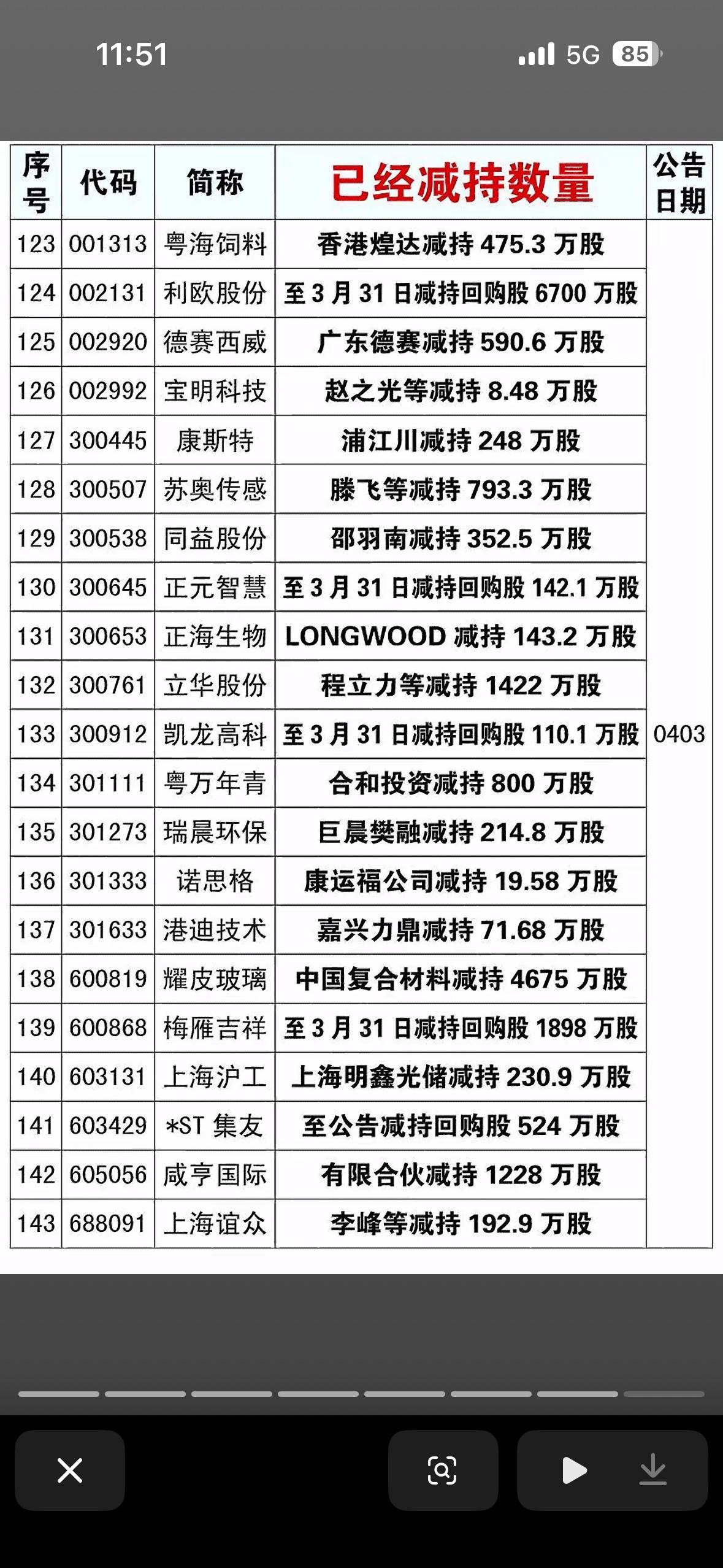 - 145名股东公告实施减持 - 统计周期:4月3日 ~ 4月11日 - 筛选标