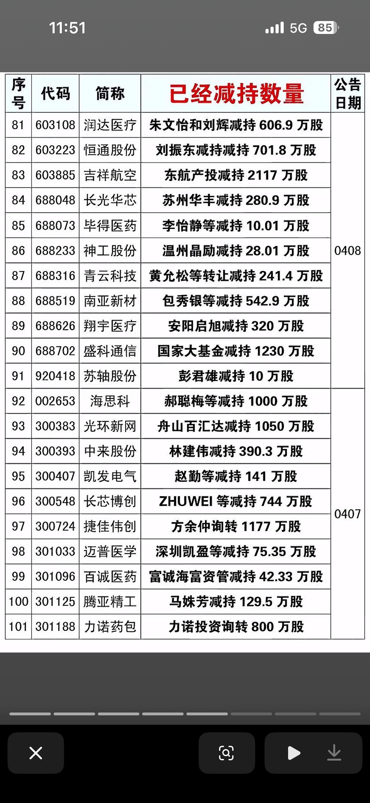 - 筛选标准:只列出减持数量在10万股以上的数据
