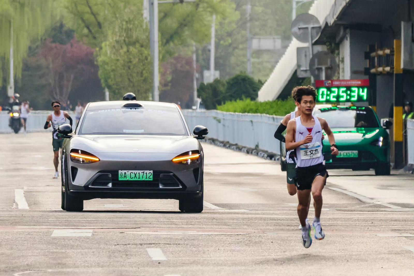小米YU7作为官方领跑头车亮相赛道,城市地标、万千跑者、小米YU7同框,就是最有力量的场面。