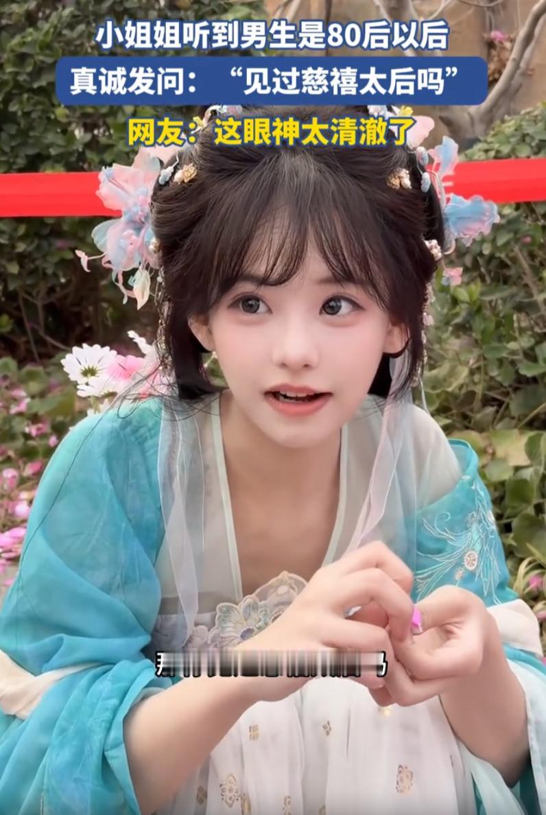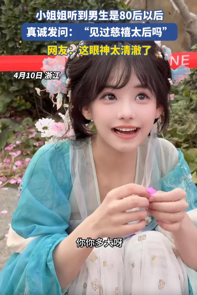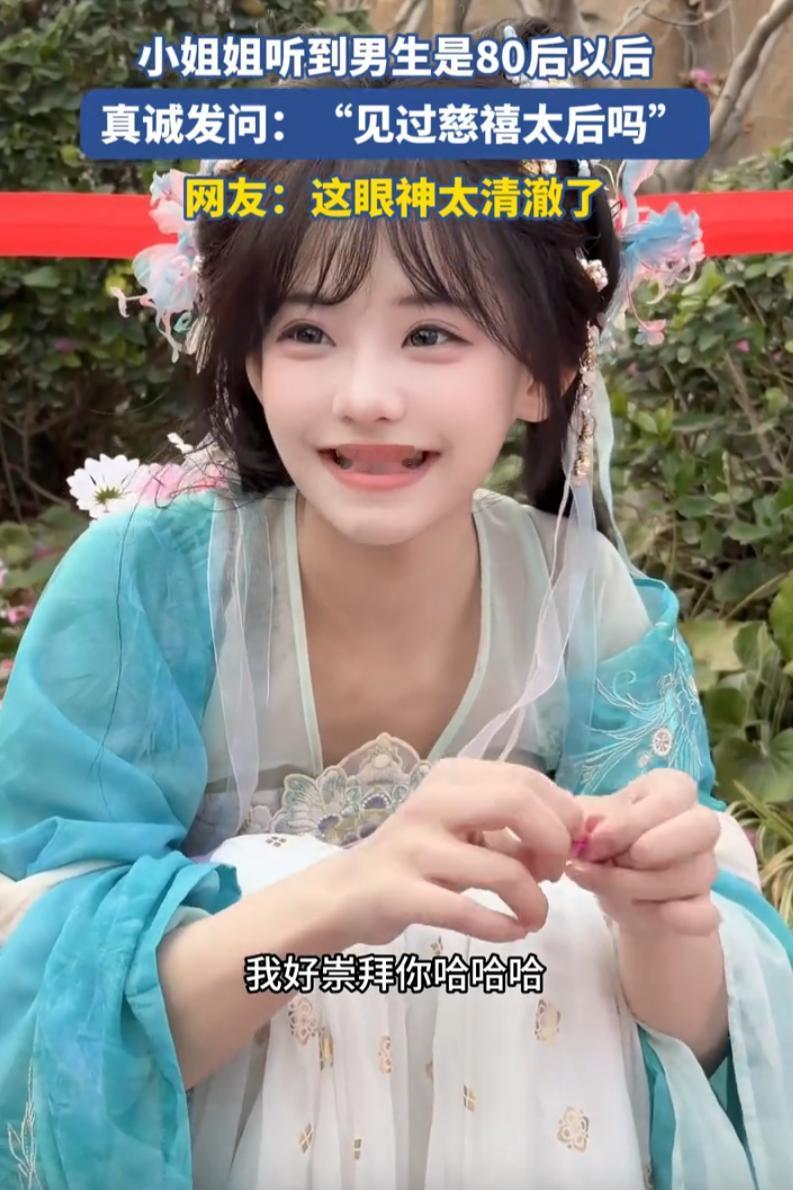 “原来傻白甜是真的!”浙江,男子去景区看到一名穿着汉服的NPC,见对方长得可爱小巧,就忍不住上前聊天,不料,女生一听男子是80后,竟然询问“见过慈禧太后吗?”,而且看她的表情,好像是认真询问