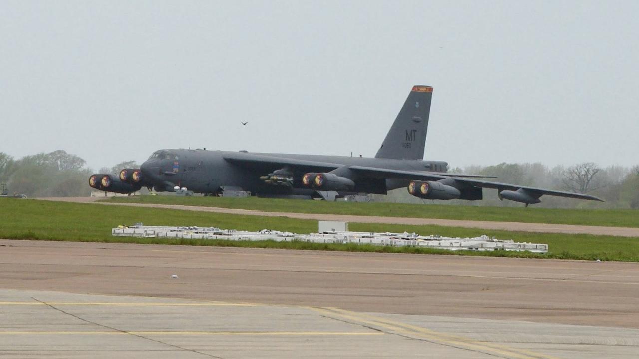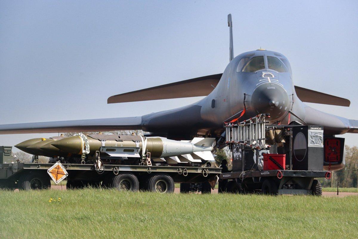 与此对应的是,美国掀起的战争阴云并没有散去。在驻英国基地,运送弹药的飞机持续降落。昨天拍到的画面,就连停机坪上的B-52H战略轰炸机也在待命状态,虽然发动机被保护罩盖住,但是外部挂架已经挂满了GBU-31重磅精导航弹。
