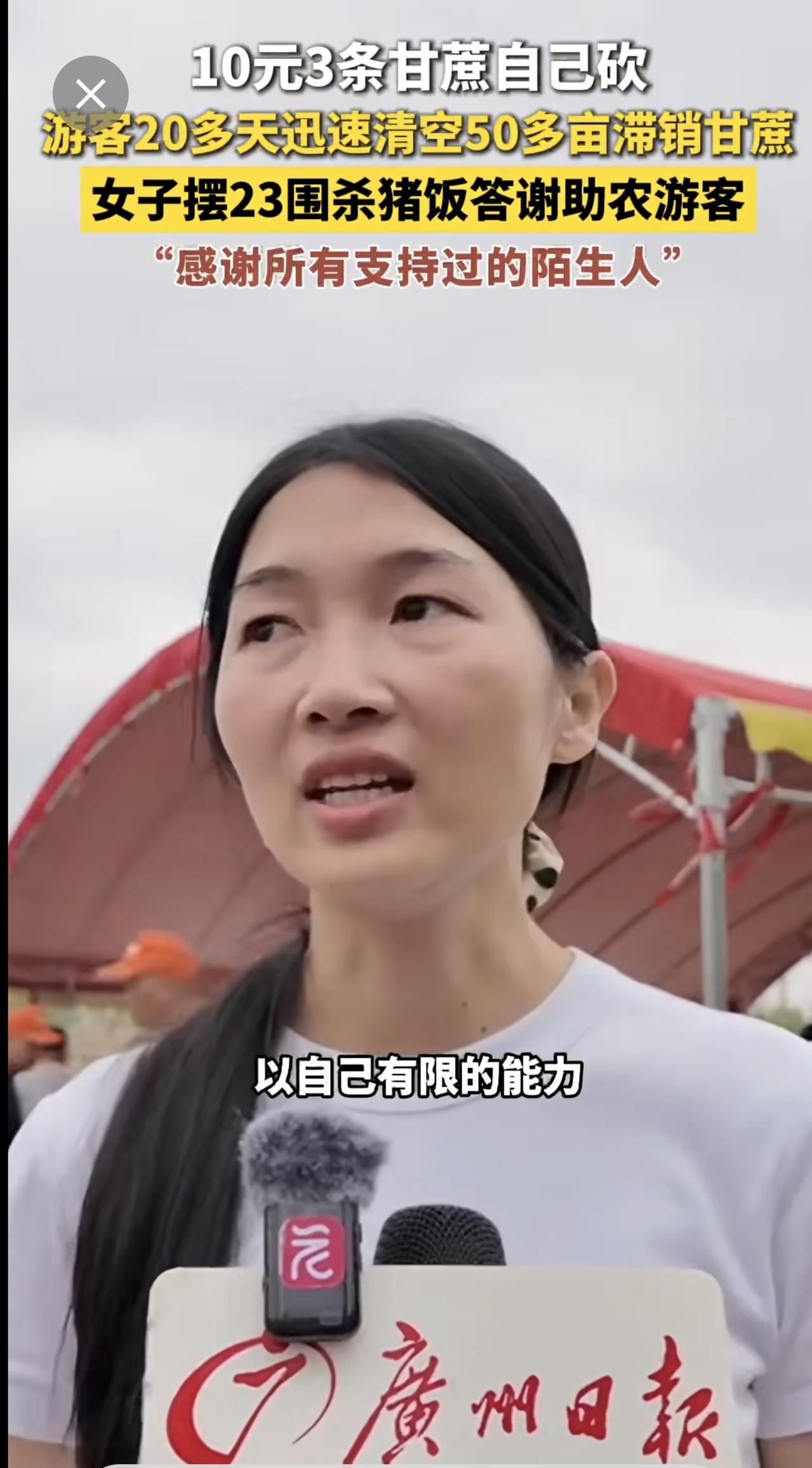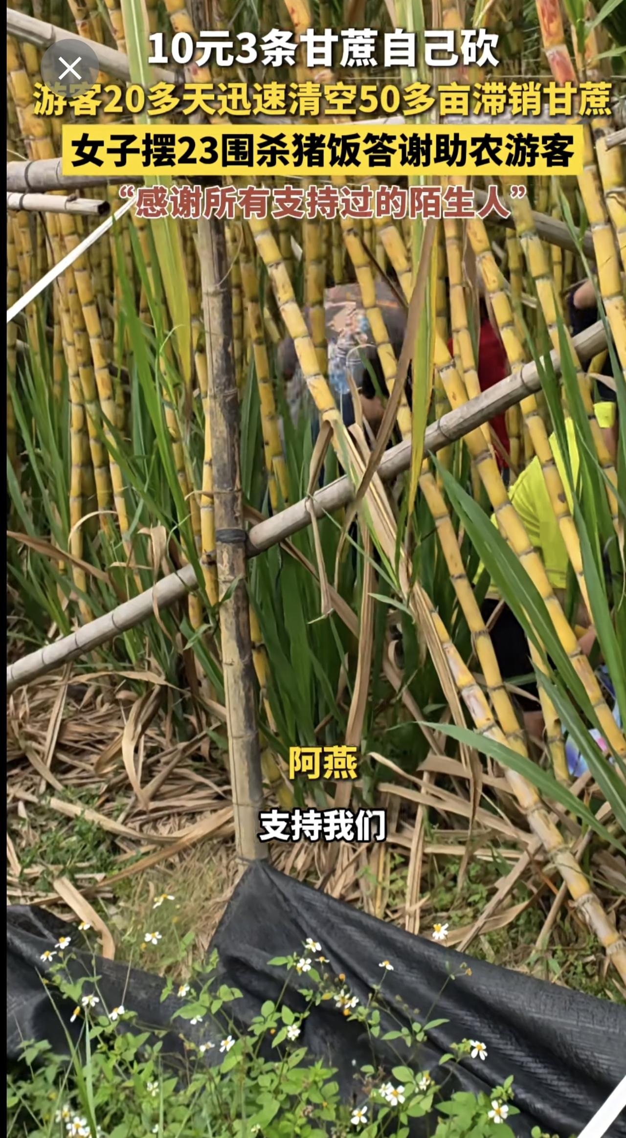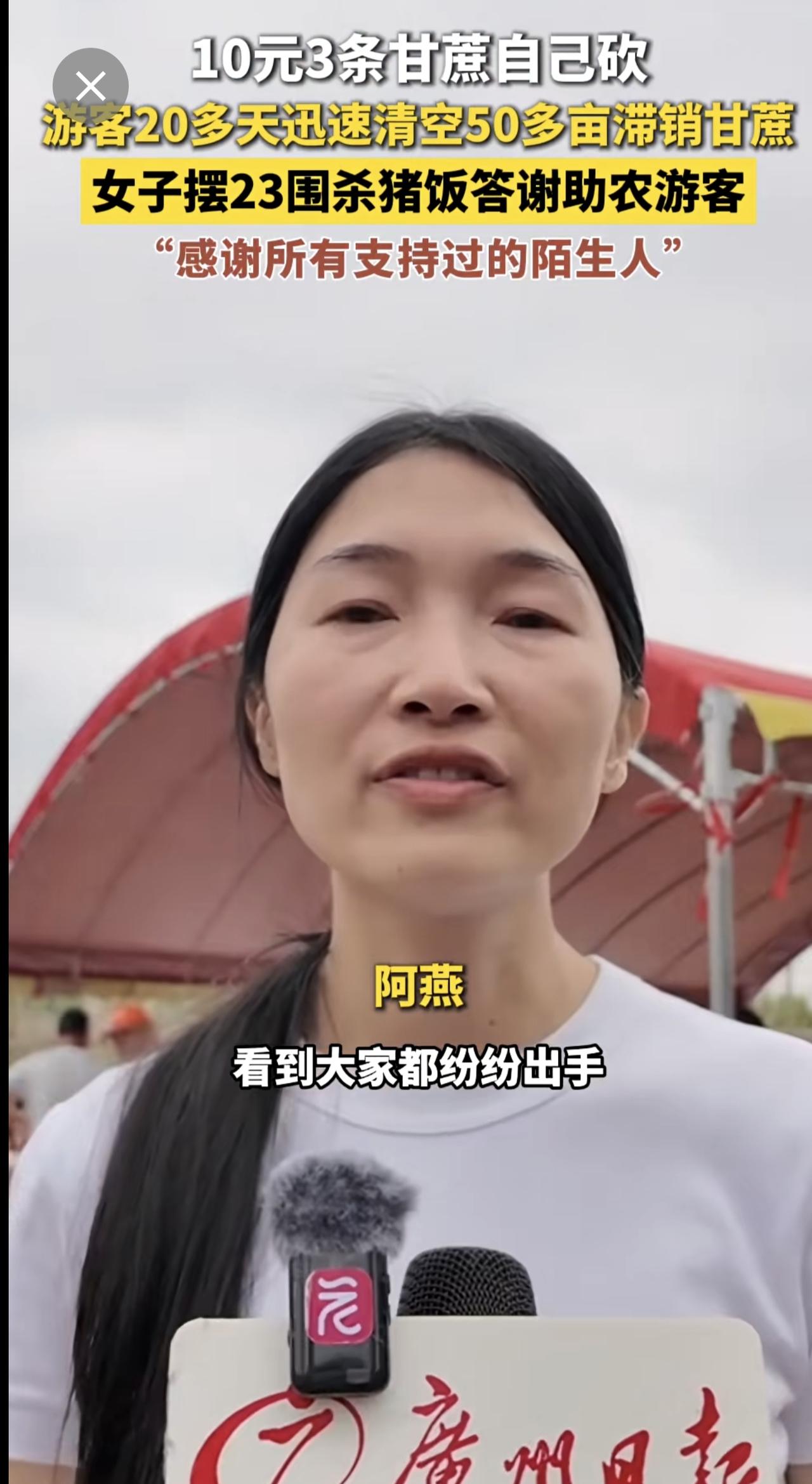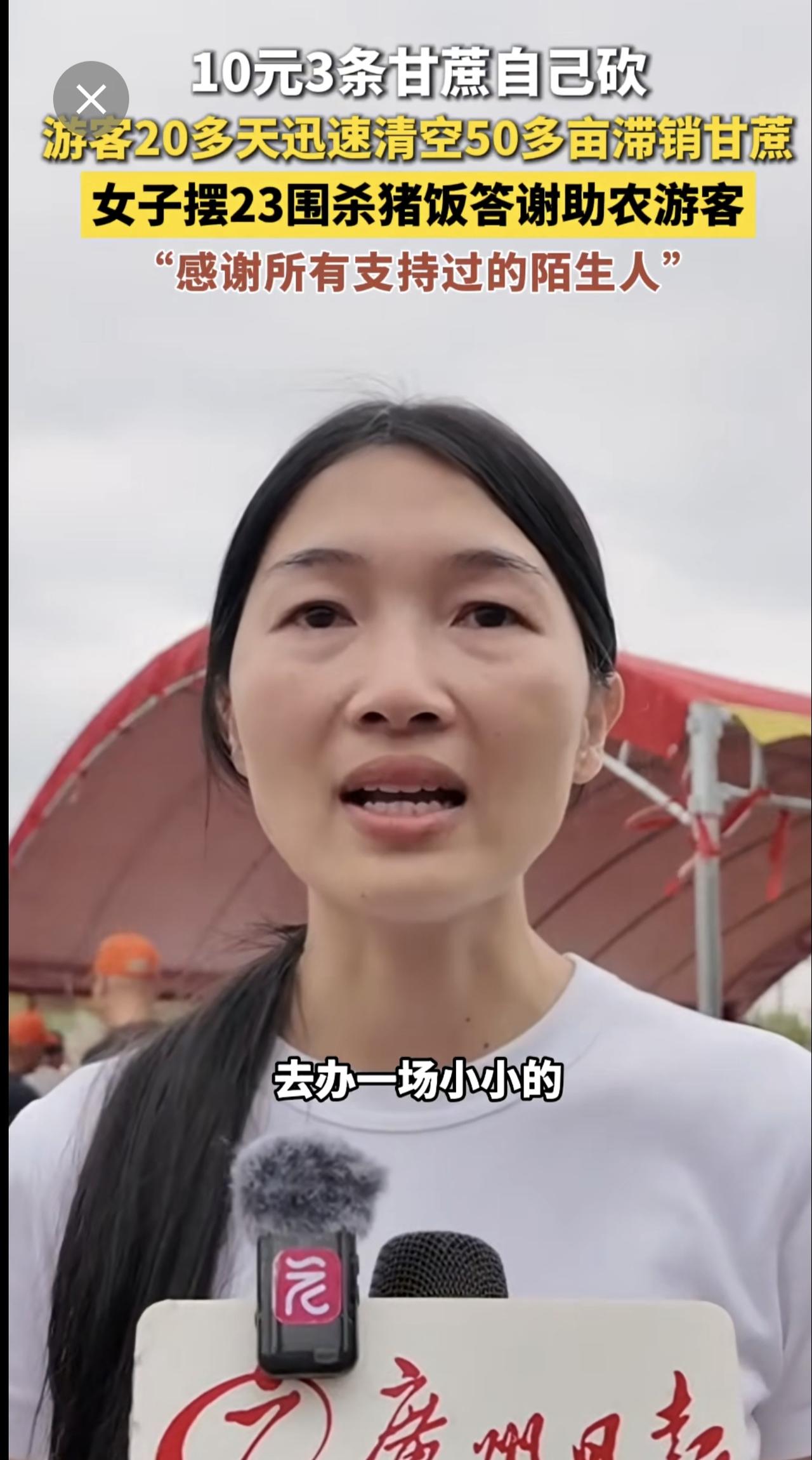 10元3条甘蔗自己砍,游客20多天迅速清空50多亩滞销甘蔗,女子摆23围杀猪饭答谢助农游客,“感谢所有支持过的陌生人”