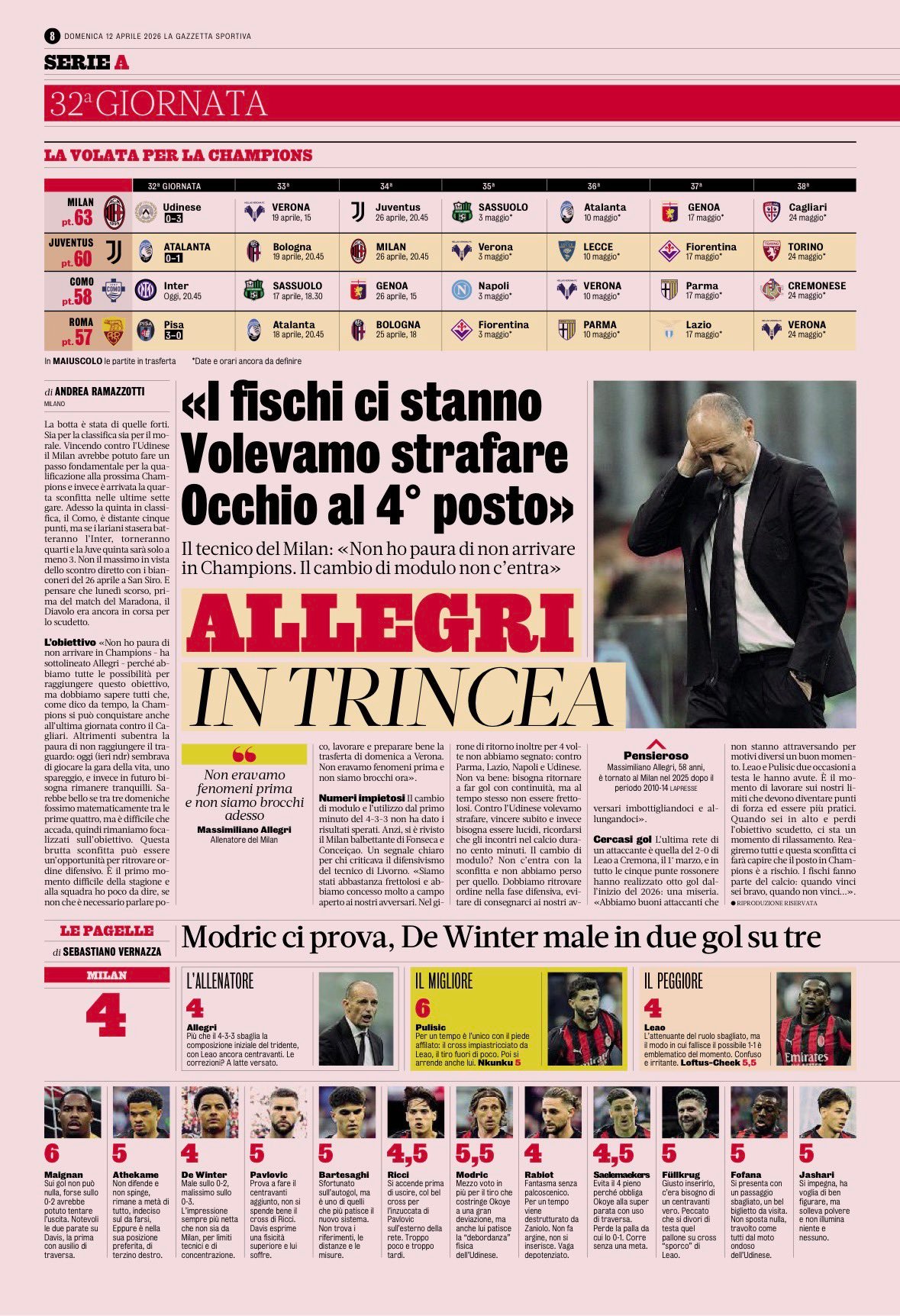 AC米兰 米体赛后评分,两人及格。意甲
