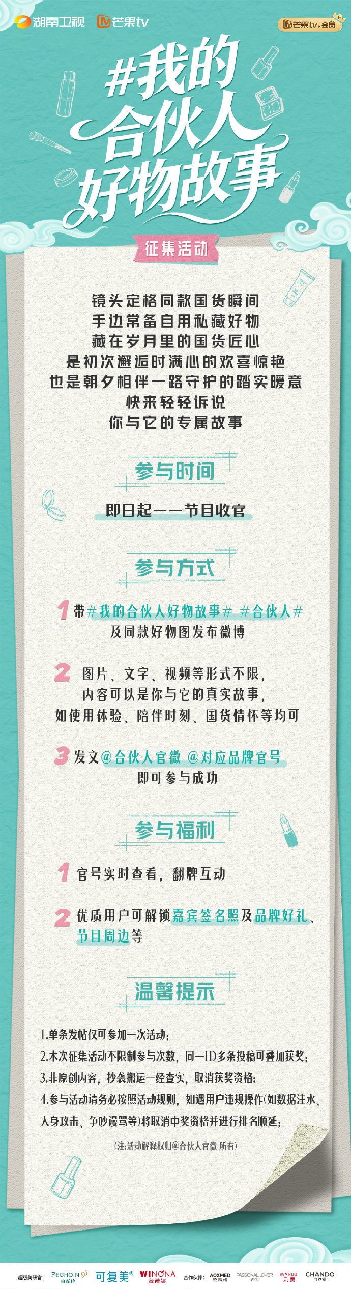 我的合伙人好物故事合伙人 每一个和国货的故事都是宝藏。《合伙人》活动来袭,带话题分享你与本命国货的点滴,被官号翻牌不是梦,嘉宾签名照、品牌好礼等你来,快晒!