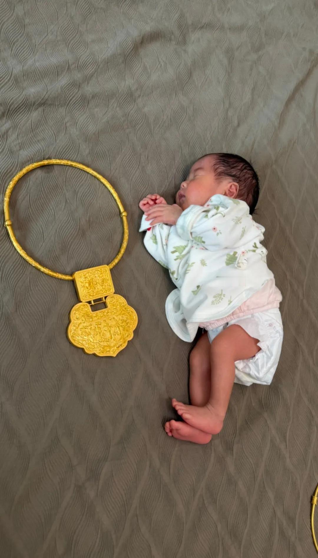 奶奶给孙女安排了和人一样大的项圈,这孩子生下来就赢在了起跑线上,这辈子不用愁了!