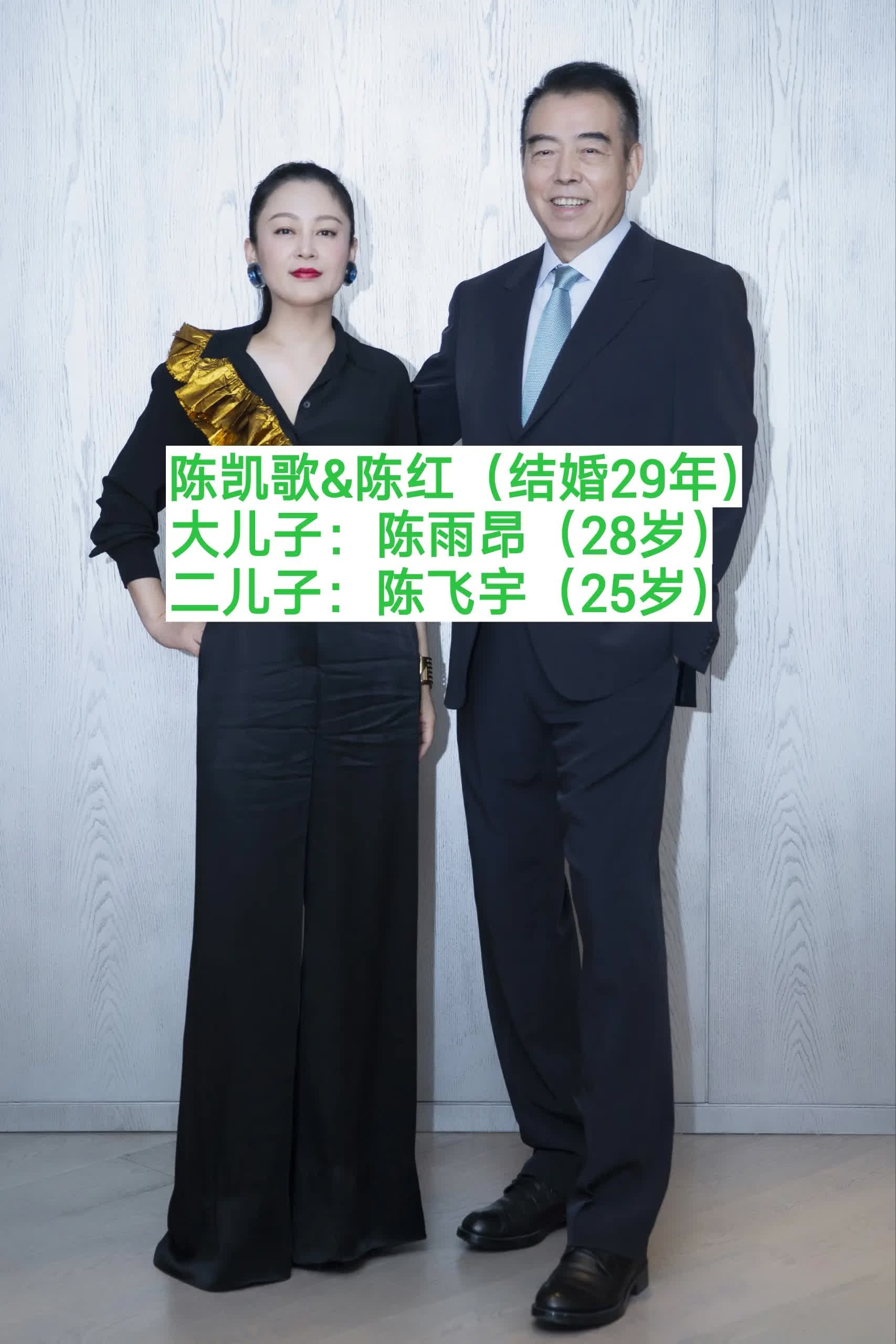 陈凯歌和妻子陈红有两个儿子大儿子叫陈雨昂,小儿子叫陈飞宇,兄弟俩不管是长相还是