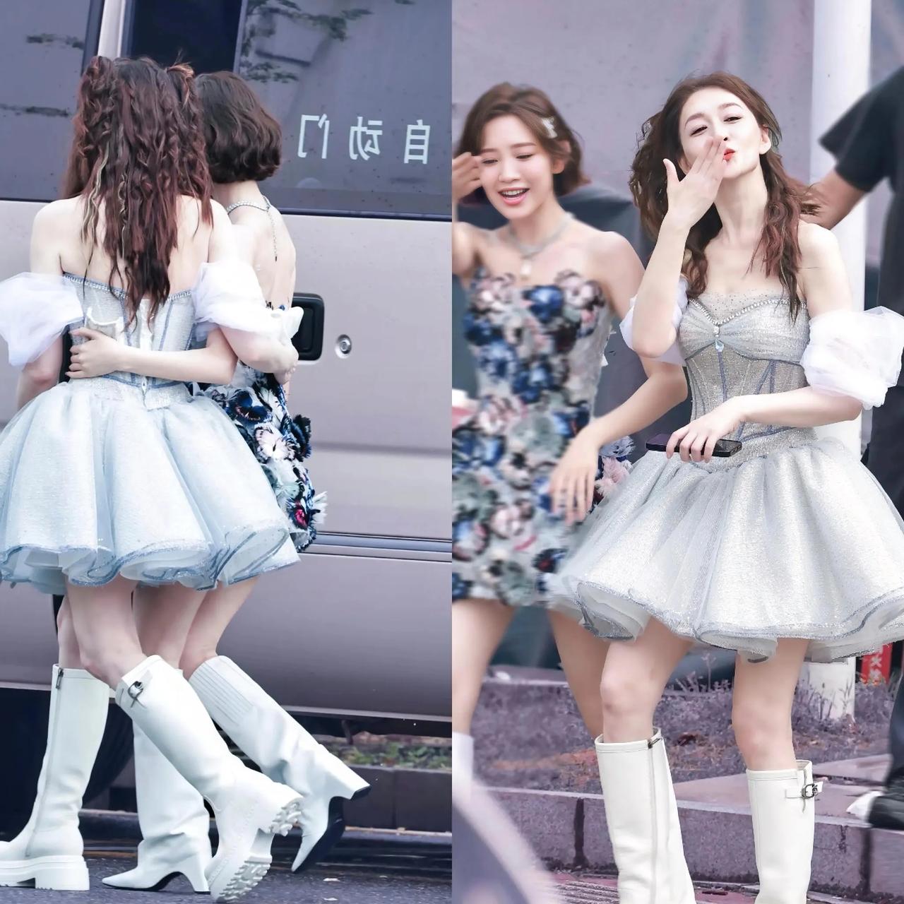 50岁的李小冉穿着小蝴蝶一样的小裙子。