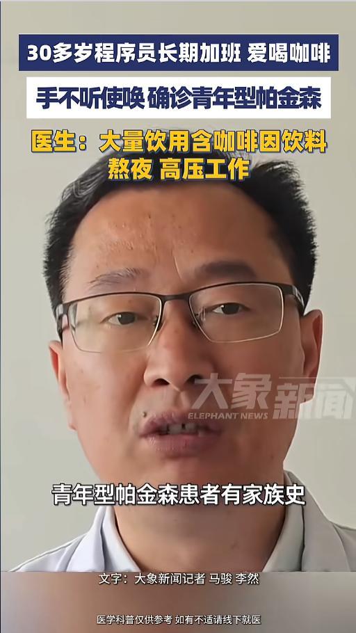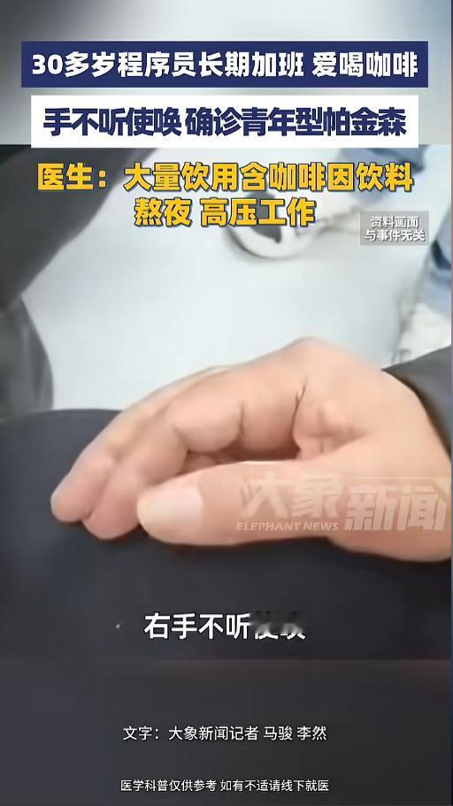 信息来源:《30多岁程序员长期加班、爱喝咖啡,右手不听使唤确诊青年型帕金森》大象新闻