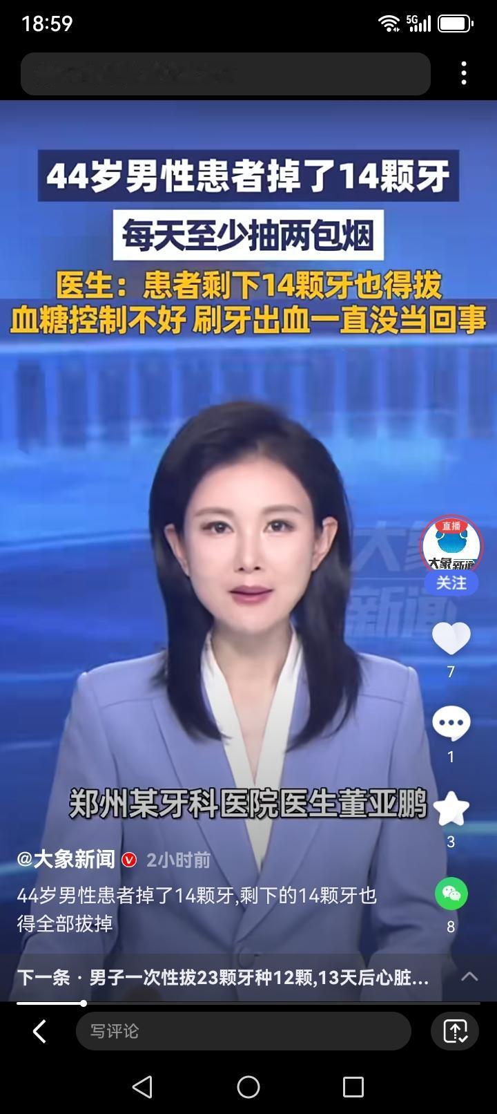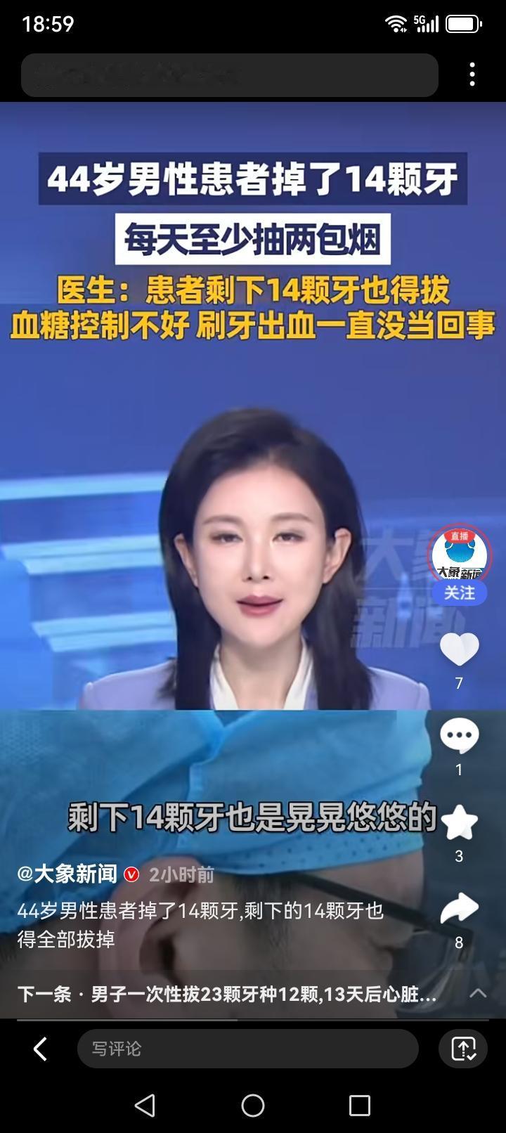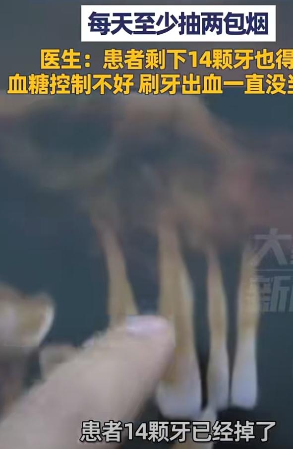 40岁男子因高血糖、长期吸烟致14颗牙齿脱落,剩余14颗也因松动全部拔除。