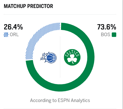 ESPN预测明日比赛:凯尔特人胜率73.6%,魔术胜率26.4%