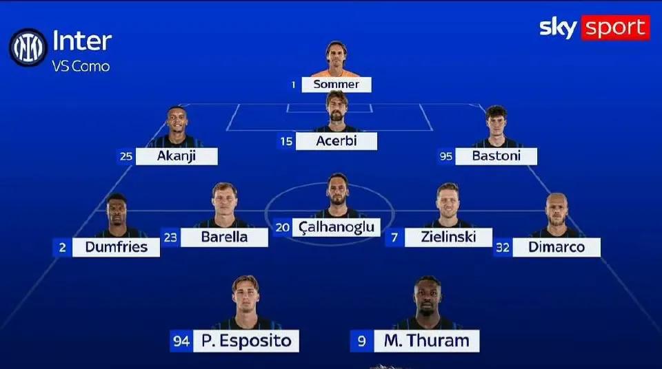 国米客场打科莫,这个首发应该不会有差池了。国米本场的强点还是集中在中场,5个主力全出,前锋线和后卫线各少一个主力,差那么点儿意思。这场要看巴雷拉领袖全队的才能。